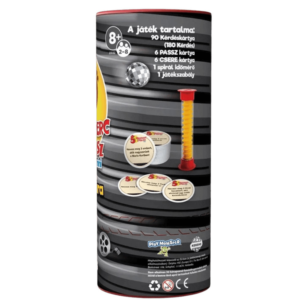 Készen állsz arra, hogy teszteld, mennyire vagy otthon a popkultúrában? Az 5 másodperc, 3 válasz mini Popkultúra társasjáték egy pörgős, izgalmas és nevetéssel teli kihívás, amelyet könnyedén bárhová magaddal vihetsz! A gyors tempójú játék során nemcsak a tudásod, hanem a reflexeid is próbára lesznek téve, miközben filmek, zenék és egyéb popkulturális témák kerülnek elő. A játék menete rendkívül egyszerű: a kérdések olyan híres filmekről, zenékről és popkultúrás eseményekről szólnak, amelyeket mindenki ismerhet. Az aktív játékosnak 5 másodperce van arra, hogy válaszoljon a kérdésre. Ha nem tud válaszolni, akkor passz vagy csere kártyát is használhat, hogy elkerülje a válaszadást. Az időmérő gyorsan pörög, így garantáltan pörögnek a válaszok! A 180 különböző kérdés és a sokféle lehetőség a játék folytatásához minden korosztály számára szórakoztatóvá teszi a játékot. Ne hagyd ki a szórakozást – vidd haza a Popkultúra verziót, és induljon a kihívás!