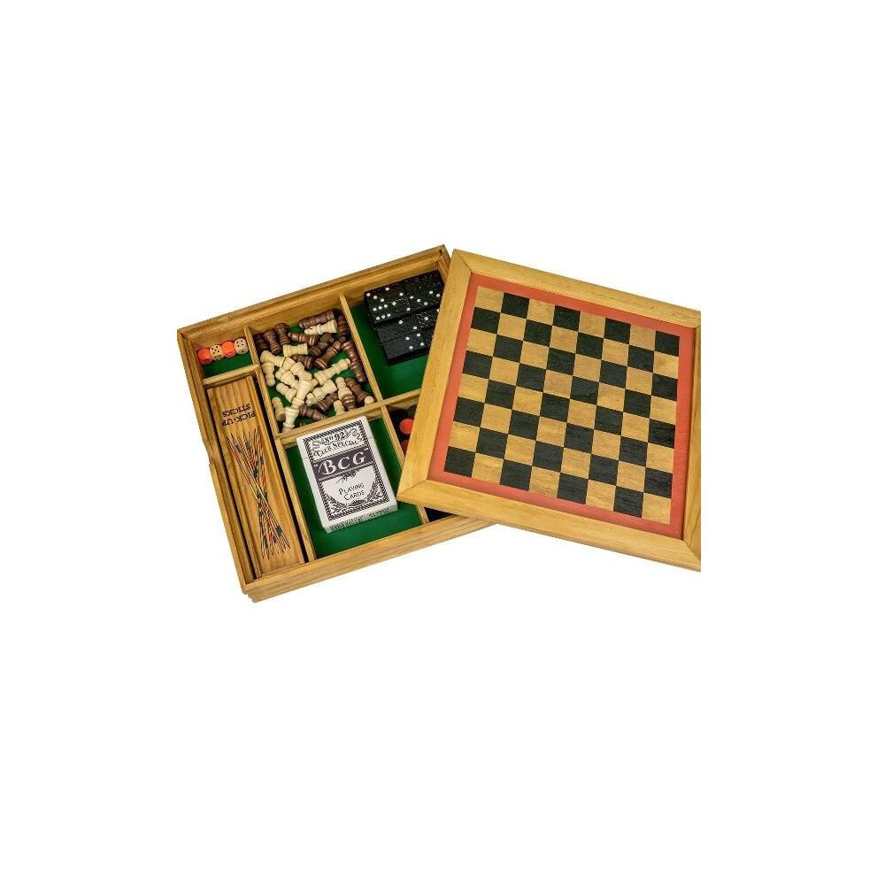 Tapasztald meg a klasszikus társasjátékok varázsát a Professor Puzzle 6 az 1-ben családi társasjáték-gyűjteménnyel, amely minden korosztály számára ideális kikapcsolódást nyújt. A gyönyörű fa kivitel halhatatlanná teszi a játéktáblát, a bábukat és az összes alkatrészt. Milyen játékokat találsz a dobozban?