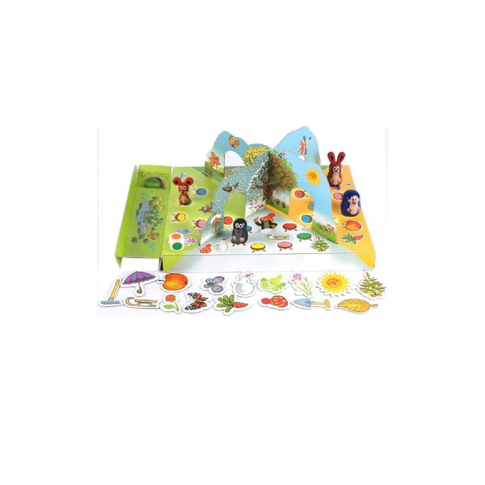Segíts Kisvakondnak és barátainak a hatalmas kert gondozásában egész évben! A Kisvakond szorgosan ápolja kertjét, ahol mindig van tennivaló, és barátai, Egérke, Nyuszika és Sünike is segítik ebben. A játéktáblán megfigyelheted, hogyan változik a kert az évszakok során, és gyűjtheted az adott évszakra jellemző képecskéket.