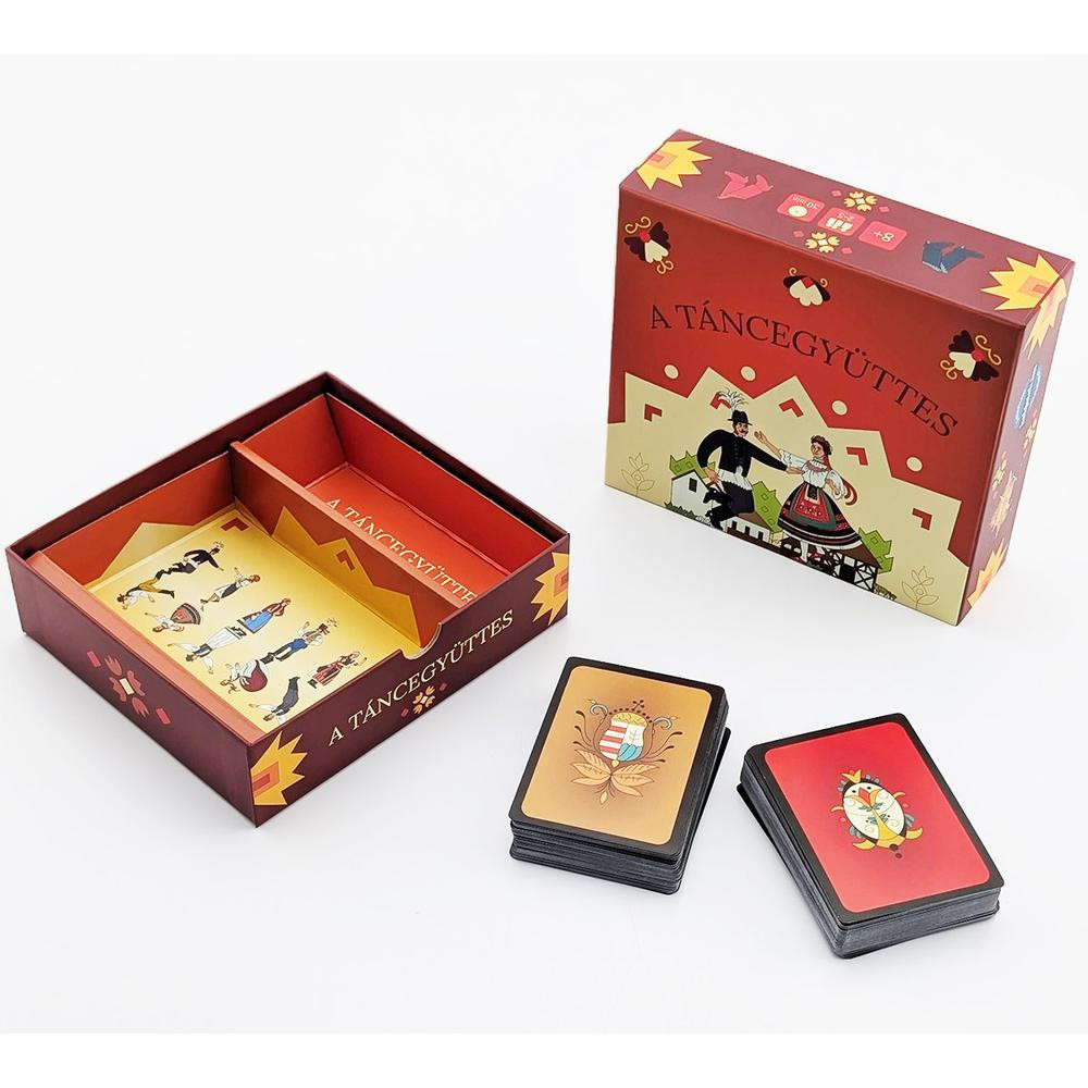 Legyél a saját táncegyüttesed vezetője ebben a különleges és pörgős társasjátékban! Állíts össze egy nyerő csapatot, vezessétek a táncegyüttest, és szálljatok versenybe a többiekkel a győzelemért. Ügyelj arra, hogy a legjobban képzett táncosokat a te csapatodban tudhasd, mielőtt mások elhappolják előlük. A játék nagyszerű módja annak, hogy bevezesd gyermeked a népi tánc világába, akár az egész család részvételével. Játékosok száma: 2-5 fő, játékidő: 30 perc, ajánlott kor: 8+ év. Próbáljátok ki ezt a különleges játékot, amelyet a Magyar Állami Népi Együttes közreműködésével készült!