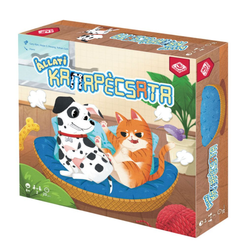 Egy nyugodt délután, a macskák nyúlnak a puha párnákon, a kutyák tagjaik lógatásával pihennek - de ahogy leszáll az este, minden megváltozik. Hirtelen a nappali trónná válik, ahol minden lépés számít. Az új "kétjátékos taktikai játékban" te döntesz: kutya- vagy macskaoldalon küzdesz a legjobb helyekért. Használva számmal ellátott kártyáidat, próbálj megmenteni minél több értékes tappancs-pontot és kibővíteni területedet. A cél az, hogy stratégiai gondolkodással szerezz több pontot és urald a kanapét! Haladók extra bónuszpontokat gyűjthetnek játékgyűjtésekkel. A játék véget ér, amikor minden mező elfoglalt, vagy nincs több helyezhető szelet. A játék nyelve magyar, a doboz tartalma: játszótábla (kétoldalas), számos kártyák, szabályfüzet. Paraméterek: