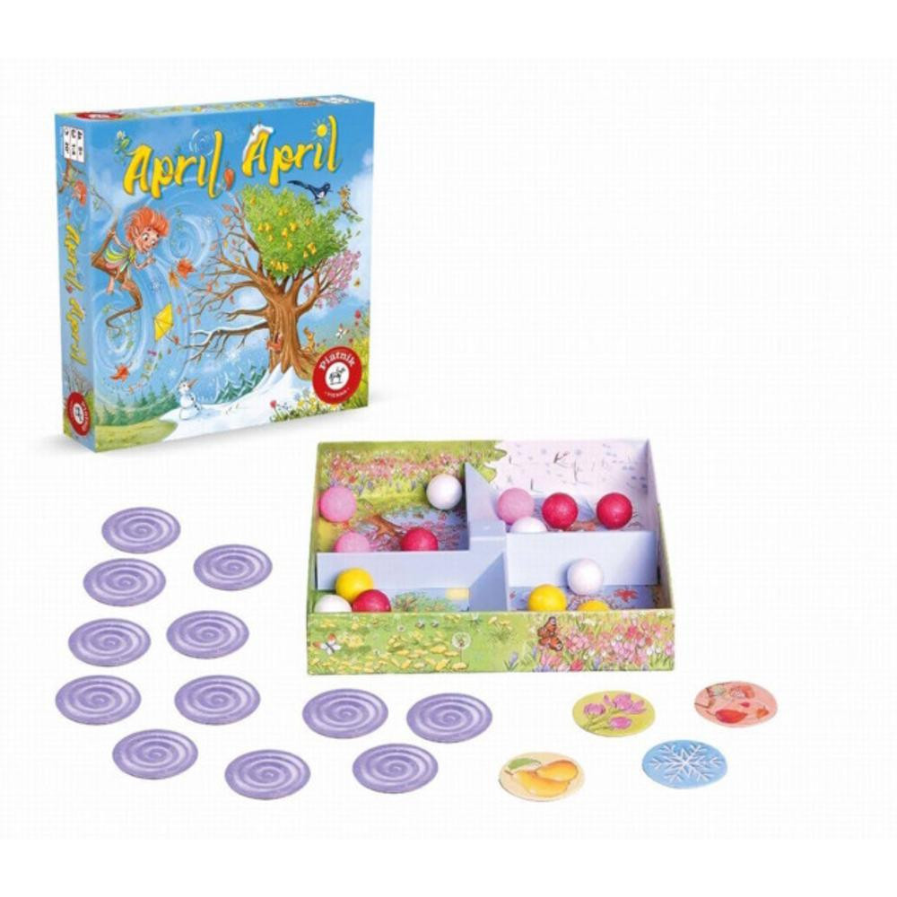 April, April egy izgalmas társasjáték, ahol a kis játékosok feladata, hogy helyreállítsák az évszakok rendjét. Képzeld el, hogy nyáron havazik, télen érnek a gyümölcsök, tavasszal hullanak a levelek és ősszel virágba borulnak a rétek. A medvék és a mormoták sem tudják, mit kezdjenek.