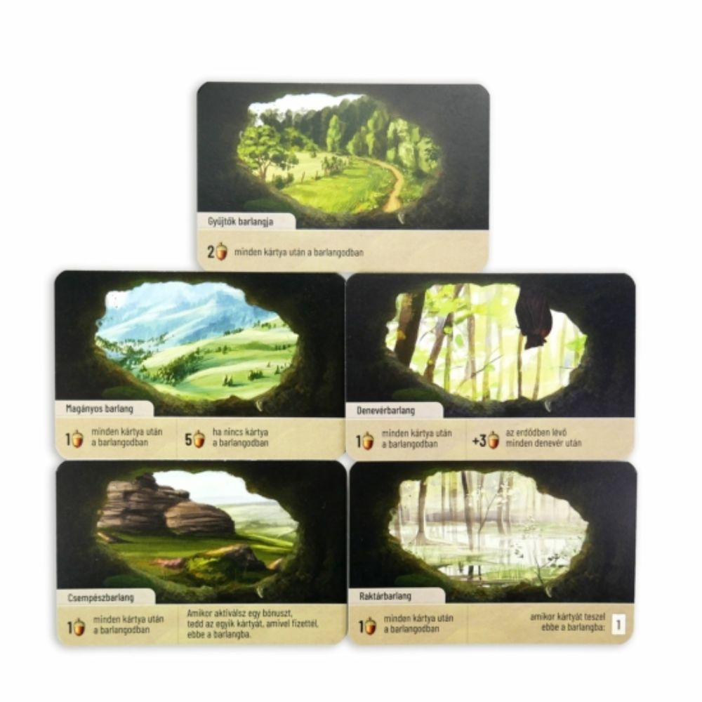 Különböző tájakon barangolva új barlangokat fedezhettek fel, miközben a troll váratlan fordulatokat csempész a játékba. Tapasztaljátok meg az erdei fenyő karácsonyi díszítését, a kakukk csínytevéseit, vagy segítsetek a gólyának gazdag élőhely kialakításában. A kiegészítő lehetőséget nyújt szóló játékra is, így akár egyedül is átélheted a természet felfedezésének örömét. A játék mechanizmusai a kollekciógyűjtésre, váltakozó képességekre, pakliépítésre és kártyahúzásra épülnek, így minden parti új élményt nyújt. Merülj el a varázslatos erdőben, gyűjtsd össze a legkülönlegesebb lakókat, és alkosd meg a leggazdagabb erdei világot!