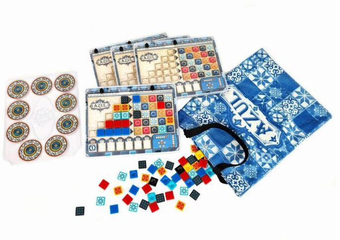 Az Azul Mini társasjáték 100 különleges gyönyörű gyanta csempével, 4 játékos táblával, 9 gyári kijelzővel, 4 pontszámjelzővel, 1 kezdő játékosjelölővel és 1 lenvászonszatyornyi kiegészítővel rendelkezik. A társasjáték úti kiadása a kis méretének köszönhetően könnyen hordozható bárhova, így a nyaralások és utazások ideális szórakozását jelenti.