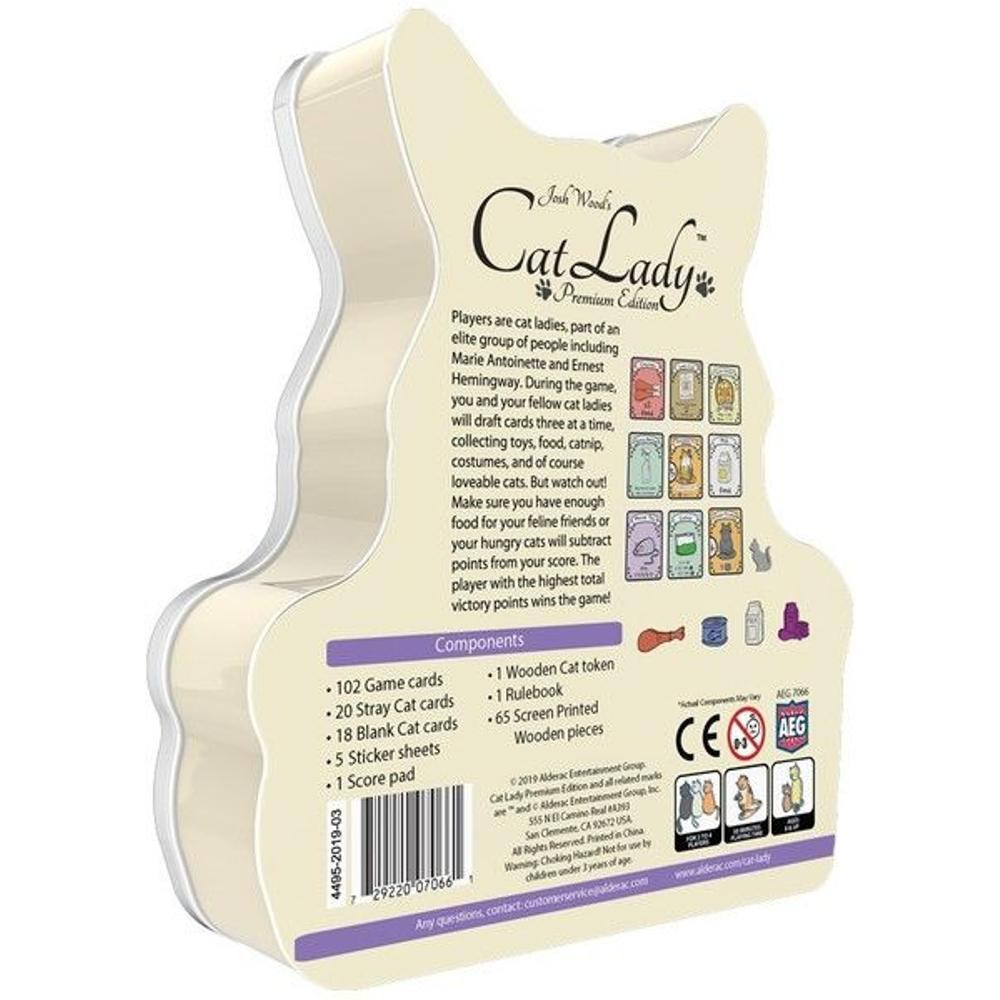 A Cat Lady Premium kiadás garantáltan különleges élményeket nyújt! A játék extra kóbor macska kártyákat, megújult külsejű fafigurákat, egy kompakt pontozó tömböt és egyéb, a játékot személyre szabhatóvá tevő komponenseket tartalmaz. Mindez elegáns fémdobozban érkezik hozzád!