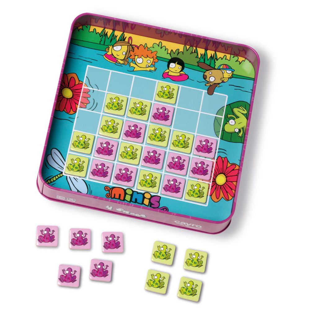 Egy mini taktikai játék, ahol a békáidnak kell „ugraniuk” úgy, hogy sorba álljanak. A Mágneses Utazó amőba társasjáték egyszerű, de szórakoztató szórakozást kínál két játékos számára. A cél, hogy négyszer egymás mellé helyezd a békákat, miközben az ellenfél is igyekszik ugyanezt megakadályozni. A játékmenet egyszerű: válaszd ki a saját színű békádat, és helyezd el a táblán, de ügyelj arra, hogy ne kerüljön olyan mezőre, amely alatt nincs támogató cella. A győztes az, aki először képes egy vízszintes, függőleges vagy átlós négyes sort kialakítani a saját színéből. A játék angol nyelvű, de nyelvfüggetlen, mivel csak a színek elrendezése számít.