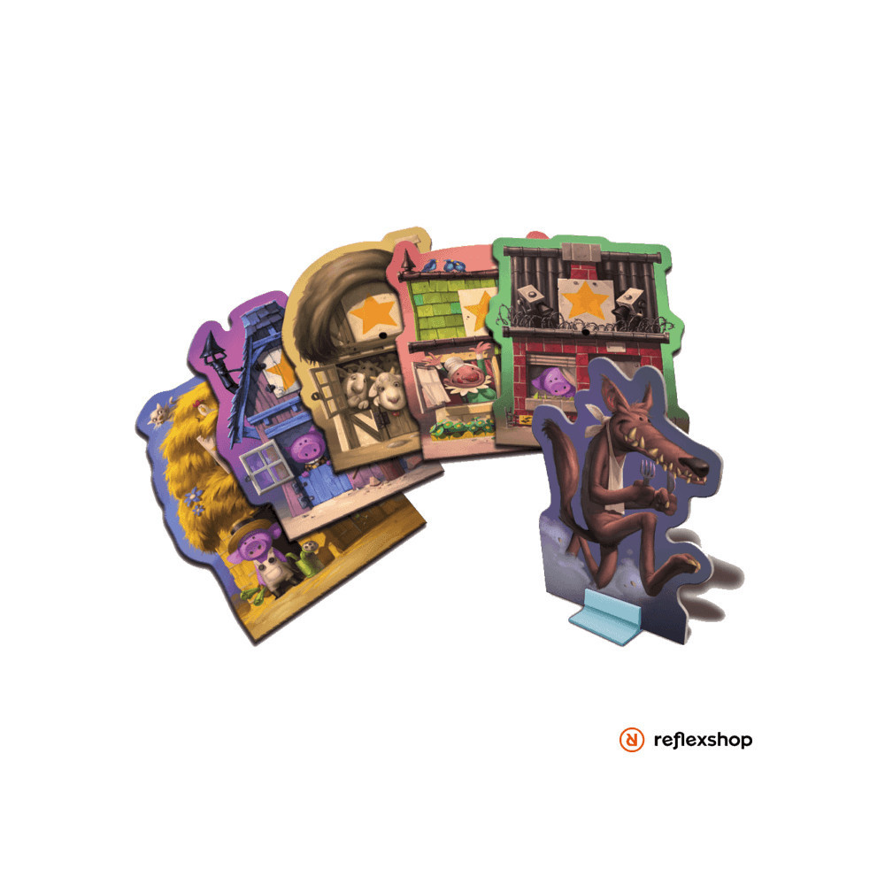 Piroska és a három kismalac kalandos játékában szembeszállhatsz egy éhes farkassal, aki a békés faluba csap le. Válaszd Piroskát, a nagymamát vagy a kismalacokat, és eszelj ki egy tervet a farkas legyőzésére. Te is lehetsz a farkas, és próbálhatod elkapni a többieket! A játékosok kártyák segítségével döntik el, hogy pihennek vagy csapdát állítanak a farkas számára. A játék izgalmas fordulatokat ígér: sikerül elkapni a farkast, vagy a lopakodó ragadozó szerzi meg a pontokat?