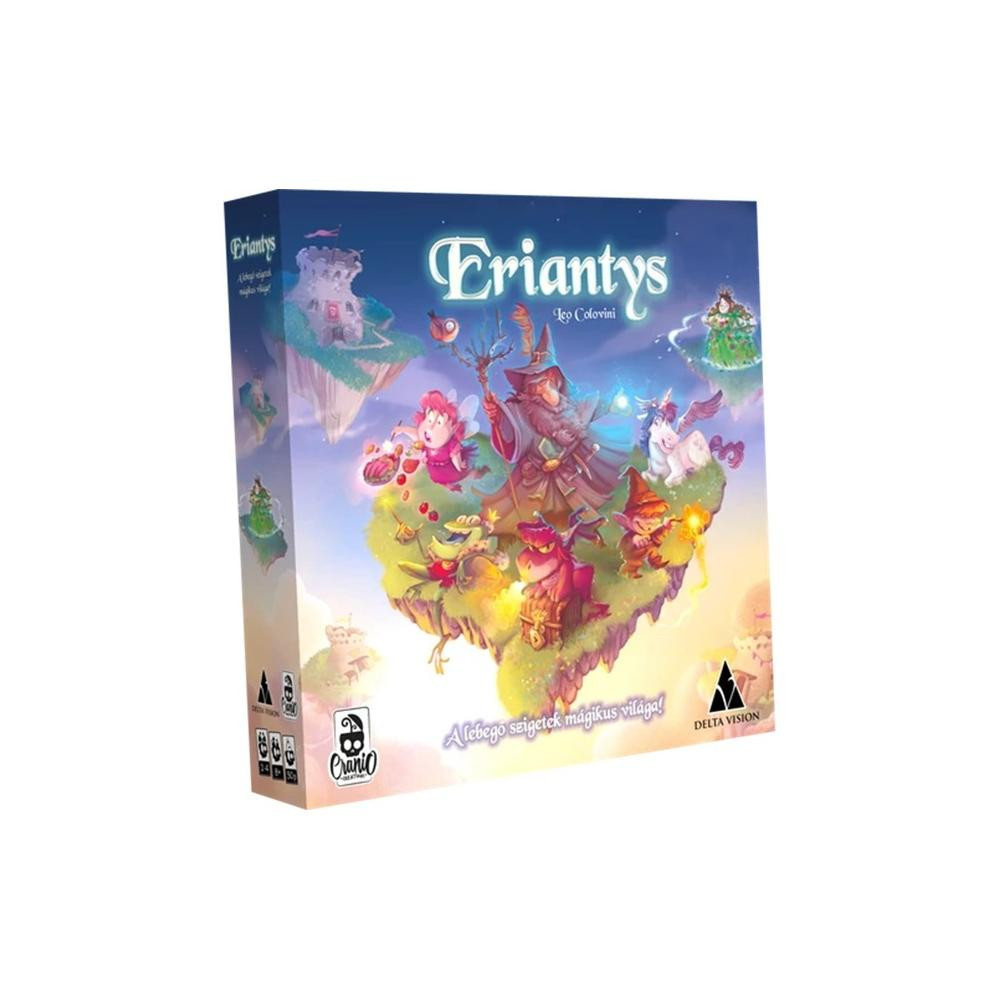 Az Eriantys társasjáték egy fordulatos, stratégiai és taktikai kihívás, ahol egy mágikus iskola vezetőjeként kell bizonyítanod tehetségedet. A puha, felhőkkel borított égbolt mögött egy varázslatos világ rejtőzik, lebegő szigetekkel, ahol öt birodalom ifjú mágikus lényei – mint apró piros sárkányok, rózsaszín tündérek, sárga manók, kék unikornisok és zöld békák – igyekeznek bejutni az iskola nagytermébe. A játék célja, hogy növeld hírnevedet és túljárj a többi varázsló eszén. Minden körben kijátszol egy kártyát, elhelyezel három diákot, majd előrelépteted Anyatermészetet a lebegő szigeteken. Az a sziget, ahol megáll, értékelésre kerül: aki irányítja, tornyát állíthatja rá, akár elvéve azt egy ellenféltől is. Ha szomszédos szigeteid vannak, összefonhatod őket, növelve hatalmadat. A játék akkor ér véget, ha három sziget marad, ha elfogynak a diákok, vagy ha egy játékos felépítette az összes tornyát. A legtöbb tornyot építő játékos nyer. Az Eriantys három játékmódot kínál, köztük csapatjátékot is. A haladó variáció egyedi képességeket biztosít, így mindig új élmény vár rád!