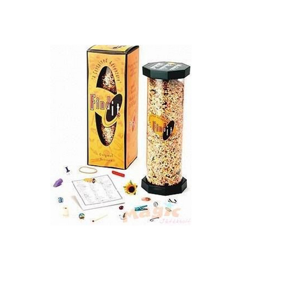 - A játék tartalma: egy eredményrögzítő, egy Find it! cső, áttekintő matrica