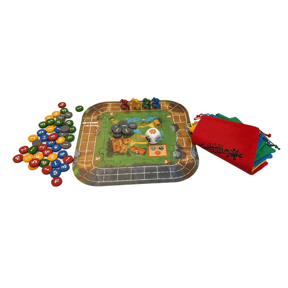 Ismerd meg a Flamme Rouge társasjáték új változatát, amely izgalmas versenyt kínál BMX-ekkel. Ebben a játékban nemcsak a sebesség, hanem a taktika is kulcsfontosságú. A játékosok BMX-kerékpárjaikon versenyeznek egy kiélezett körön át, ahol ugratók felett ugranak át, kanyarognak a kavicsos szakaszokon, és az időjárás viszontagságai sem állítják meg őket. Ne felejts tartalékolni az energiádat, különben a versenytársak könnyen lehagynak. Ez az izgalmas időtöltés kicsiknek és nagyoknak egyaránt szól!