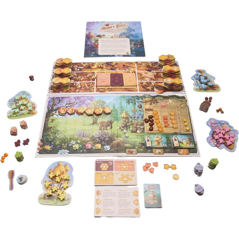 A méhek felfedezték, hogy a mézkereskedelem lehet a kulcs a békéhez és jóléthez az erdőben. A királynő terve szerint a medvék, borzok és más erdei lények részére történő mézeladás új távlatokat nyit a méhek számára. Indítsd be a vállalkozásodat: építsd a kaptárt, gyűjts nektárt és állíts elő mézet a medvepiacon! A Honey Buzz egy munkásméh-lehelyezős társasjáték, amiben a játékosok saját méhkasukat fejlesztik különböző lapkák lerakásával. Ezek a lapkák különféle akciókat tesznek lehetővé, mint nektárkeresés, mézkészítés, vagy akár mézkóstolók szervezése. A cél, hogy legyél a legügyesebb méh és domináld a piacot!