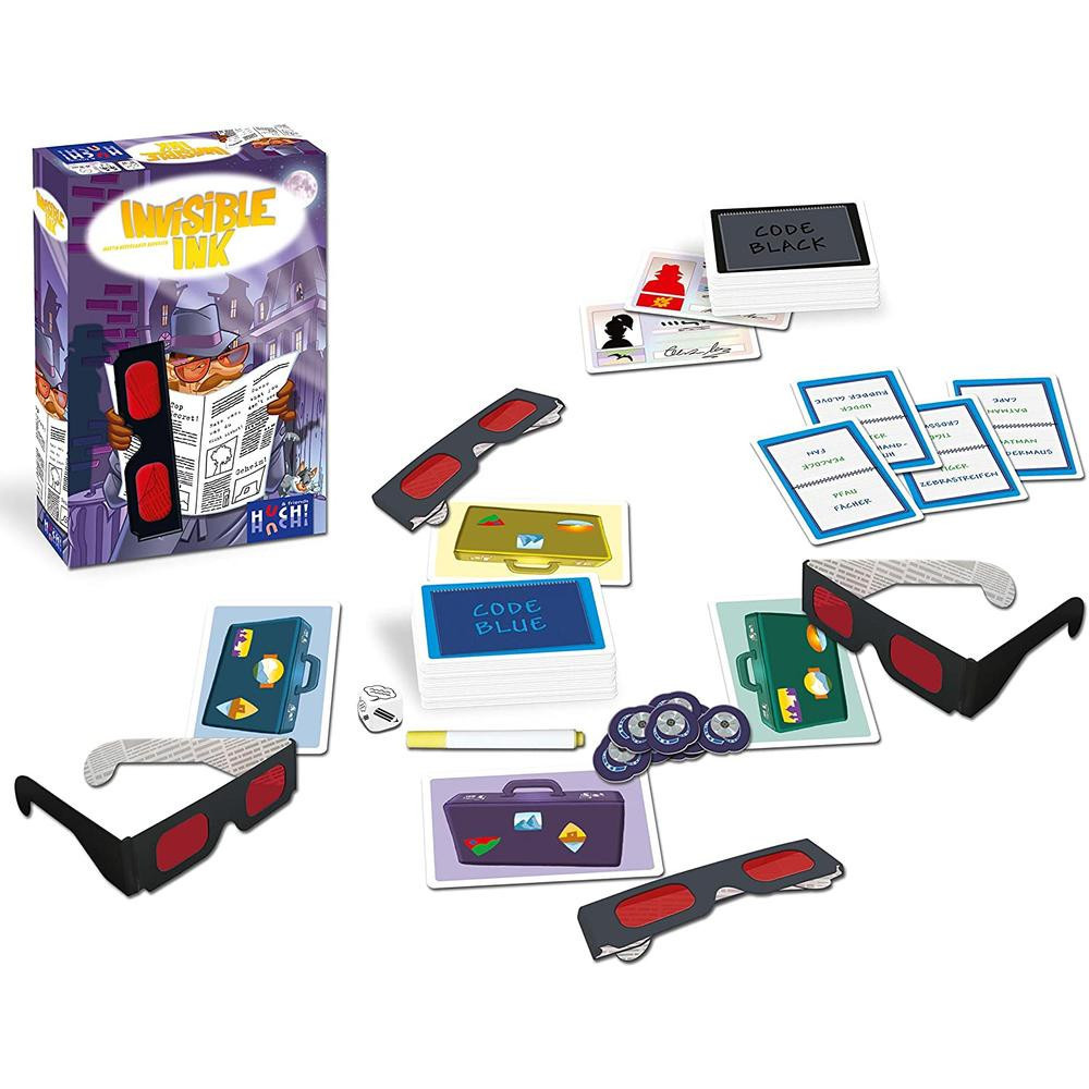Merülj el az Invisible Ink világában, ahol te lehetsz a kettős ügynök és a nyomozás része egyszerre! Különleges szemüvegekre is szükséged lesz, de vigyázz, nem minden az, aminek látszik. Rajzolj látatlanban, és találd ki a láthatatlant. Ez a multinyelvű társasjáték igazi kihívást jelent mindenki számára, hiszen itt nem hagyatkozhatsz a szemedre. Légy éleslátó, találgass merészen, emeld a tétet és kockáztass okosan!