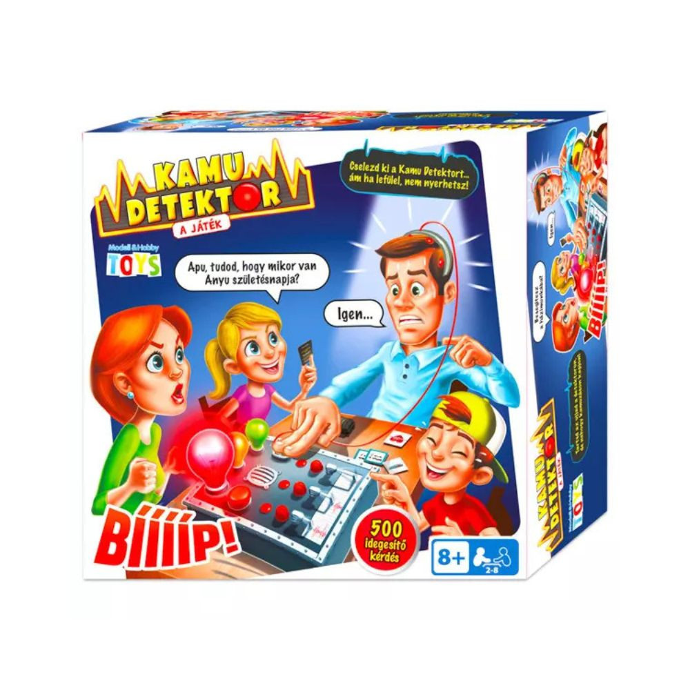 Mennyire ismered a barátaid? A Kamu Detektor játékban ennek kiderítésére kapsz lehetőséget — feltesztek kérdéseket, és közben egy hazugságvizsgáló érzékelheti, ha kamuzol. Mindenki visel egy detektorkészüléket, és kérdésekre válaszol; ha a készülék „hazugságot” jelez, elveszítesz egy életet. Addig játszotok, amíg el nem fogy mindenki élete — az győz, aki „életben” marad. A játékmenet izgalommal teli, mert minden kérdésnél ott a feszültség: merj igazat mondani vagy kockáztass? A játék nyelve: magyar.