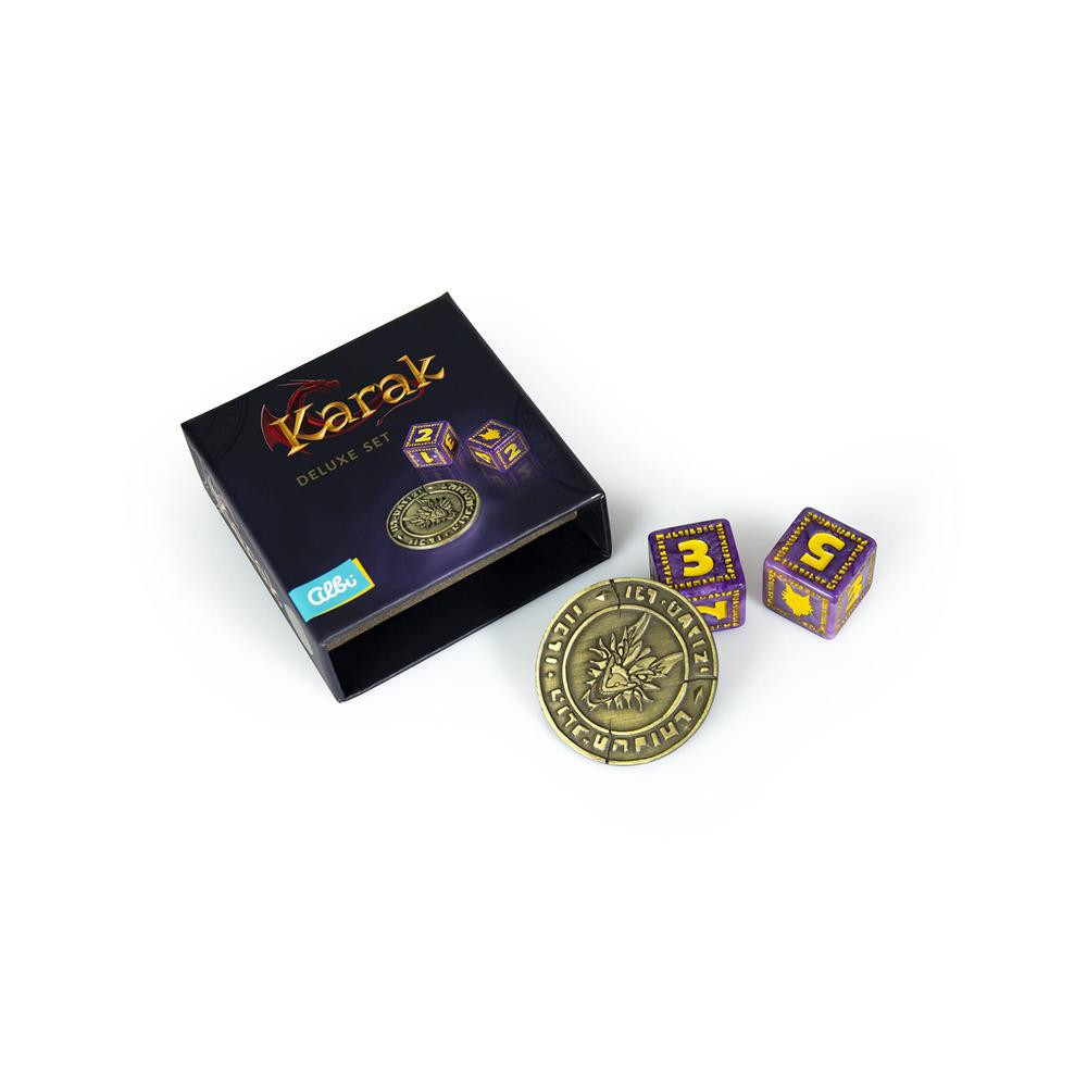 Merülj el Karak kastélyának titokzatos katakombáiban, ahol minden sarkon veszély és kincs vár rád! Hat különböző hős indul útnak, hogy feltárja a rejtélyes labirintust, legyőzve az ott lakó szörnyeket, és megszerezze a legendás sárkány gyöngyszemét. Szerezd meg a legjobb fegyvereket és varázslatokat, és használd ki a ravasz stratégiákat, hogy túljárj a riválisok eszén. Vajon te leszel az, aki elnyeri a legtöbb kincset és a hírnevet? A játék folyamatában a játékosok felváltva felfedezik a labirintus ismeretlen részeit, lapkáról lapkára építve a térképet. A cél, hogy minél több kincset gyűjts össze, és a labirintus legnagyobb bajnokává válj. Az igazi kihívás a sárkány legyőzésével ér véget, de a győztes az lesz, aki a legtöbb kincset halmozza fel! Tedd különlegesebbé a kalandot a Karak: Deluxe Set kiegészítő használatával, amely egyedi dobókockákat és fém érmét kínál, fokozva az élményt! A kiegészítő csak az alapjátékkal együtt játszható.