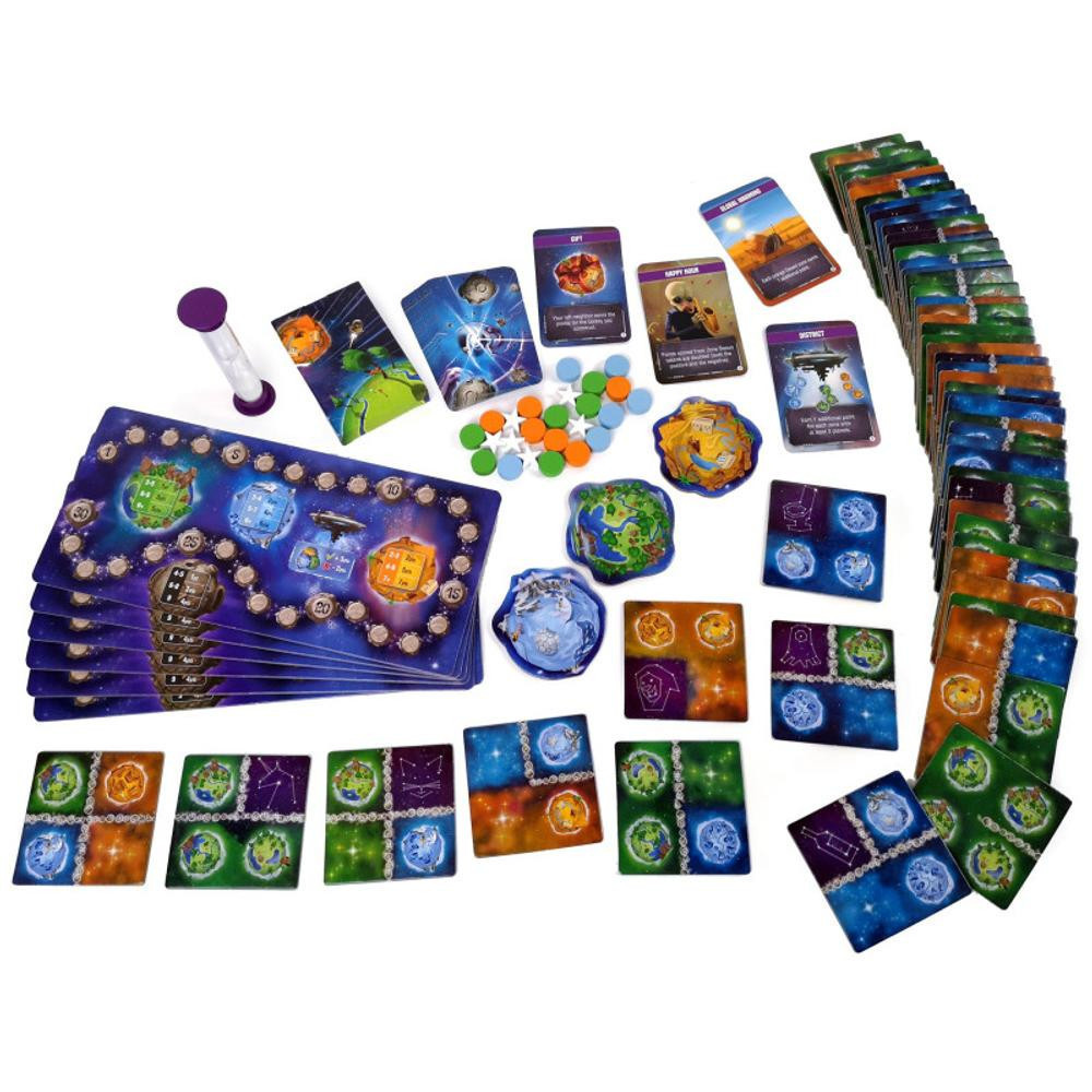 A Kozmosz művek egy mozgalmas lapkalerakós játék. A játék öt köre alatt minden játékos megpróbálja felépíteni és optimalizálni saját 9 lapkából álló galaxisát. Az idő korlátozott, így gyors döntések szükségesek. Egy ponton túl muszáj lesz bolygóidat különböző zónákba (át)rendezni, miközben aszteroida utadat próbálod minél hosszabbra építeni. A Káosz kártyák mindegyike igazi kihívást jelent, mivel minden körben új szabályokhoz kell alkalmazkodni. A játék végén a leggyengébb zónád pontértéke hozzáadódik az aszteroida utadhoz, hogy eldőljön, ki a győztes.