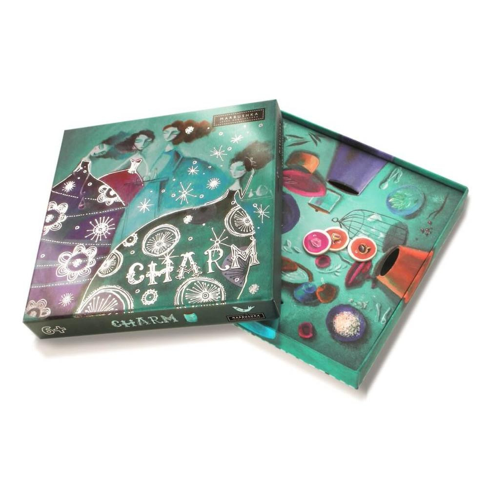 Közismert tény, hogy a királylányok nem főznek. Csak akkor, ha akad olyan nemes cél, amiért bármit megtennének. A birodalomban élt egy herceg, aki küllemével és makulátlan jellemével megdobogtatta a szívüket. Olyan herceg volt, aki miatt megérte főzőkanalat ragadni! Bár próbálkoztak csábítással sugárzó személyiségükkel és bájos mosolyukkal, végül a mágia maradt az egyetlen segítség. Bűbájos társasjáték! A Marbushka társasjátékok mindegyike művészi grafikával rendelkezik, ami szórakoztat és leköti a gyerekek figyelmét. A Bűbáj aranyos története garantáltan a családi összejövetelek elengedhetetlen kelléke lesz!