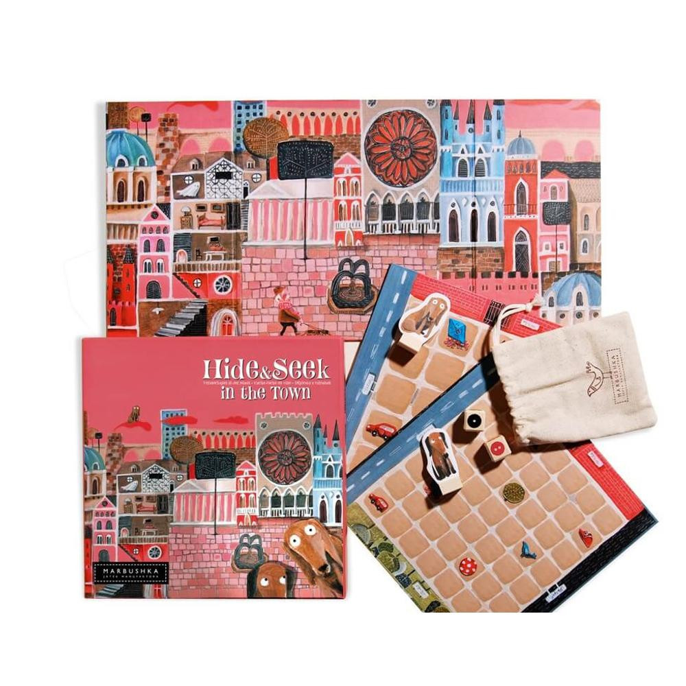 Béla bácsi, a gondoskodó gazdi, minden este elviszi kedvenceit, Foltit és Lujzit, sétálni. Egyik este azonban Lujzi elkódorgott! Ahogy észlelték a hiányát, külön ösvényen indultak a felkutatására. Te vajon segítesz-e nekik meglelni egymást? Fedezd fel a Marbushka varázslatos világát, ahol mindegyik társasjáték gyönyörű grafikával rendelkezik. A „Bújócska” egy ilyen izgalmas történeten alapuló játék. A játék tartalma magában foglal: