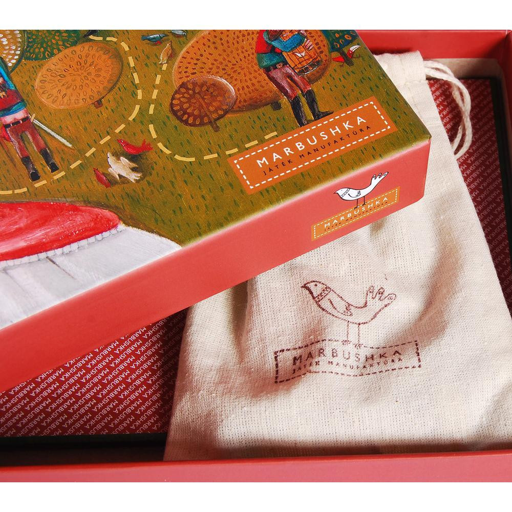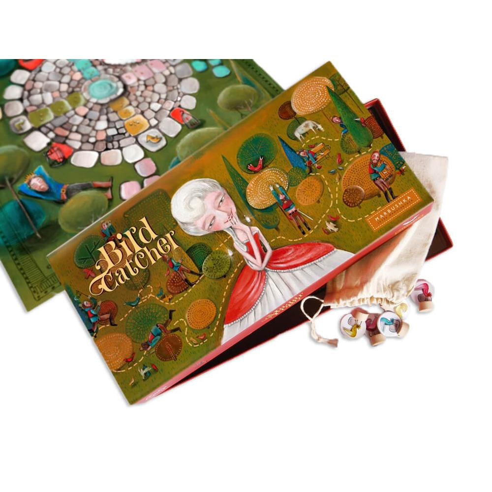 A Marbushka társasjátékok gyönyörű, művészi grafikájukkal hozzák el a mesés történeteket. A Madárfogó is egy kedves kis történetre épül, így a játék még élvezetesebb.