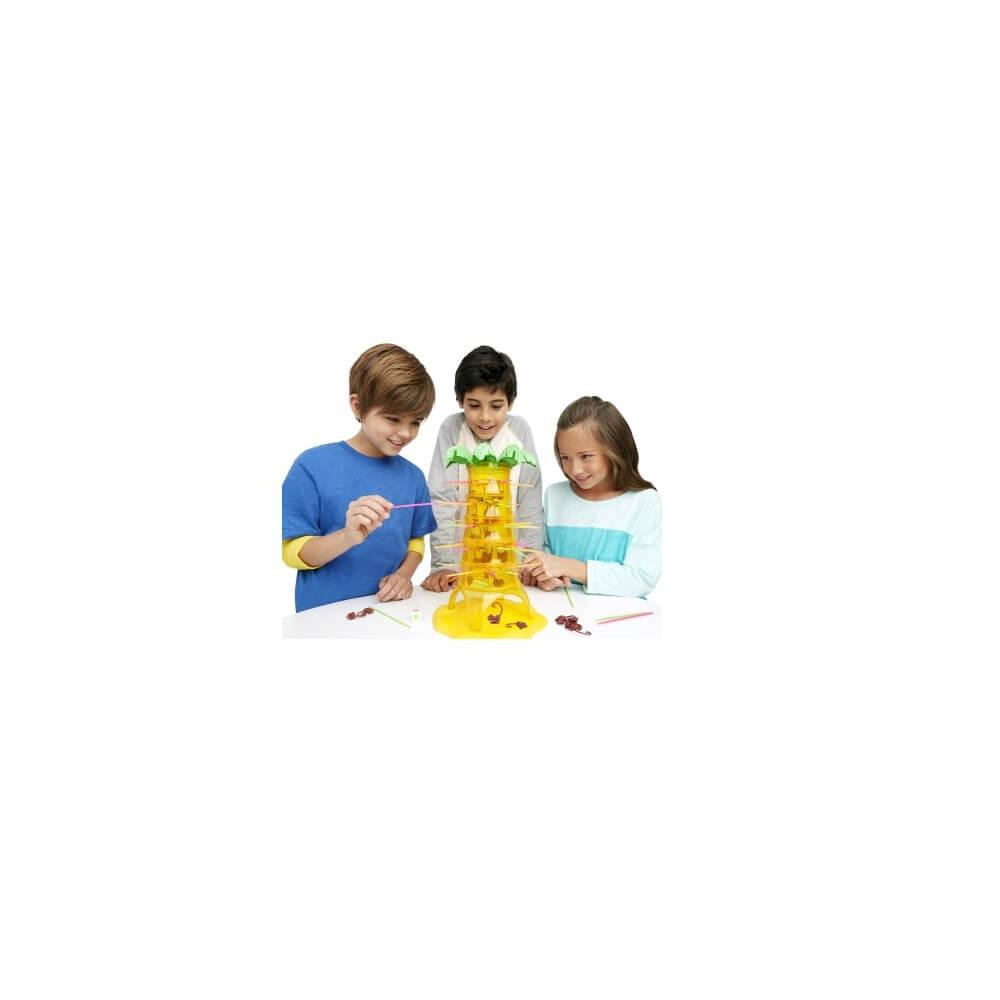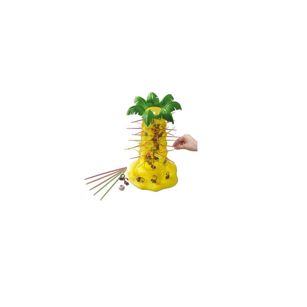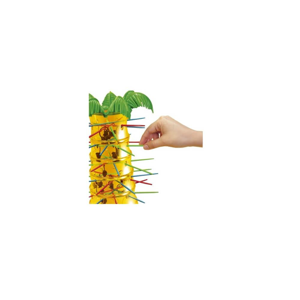 A "Bukfencező majmok" egy izgalmas társasjáték, amely garantáltan leköti a gyerekeket. A cél egyszerű: helyezd el a majmaidat a pálmafán, majd dobj a színes kockával, és húzd ki azt a színű pálcikát, amilyen színt dobtál. De vigyázz, a majmaidnak a fán kell maradniuk, különben búcsút mondhatsz a nyerésnek! Aki a legtöbb majmot meg tudja tartani a fán, az lesz a győztes. A majmok a kunkori farkincájuk segítségével kapaszkodnak a fa ágaiba, így koncentrációra és ügyességre is szükséged lesz. Ez a játék fejleszti a koncentrációs képességet és rengeteg nevetést ígér!