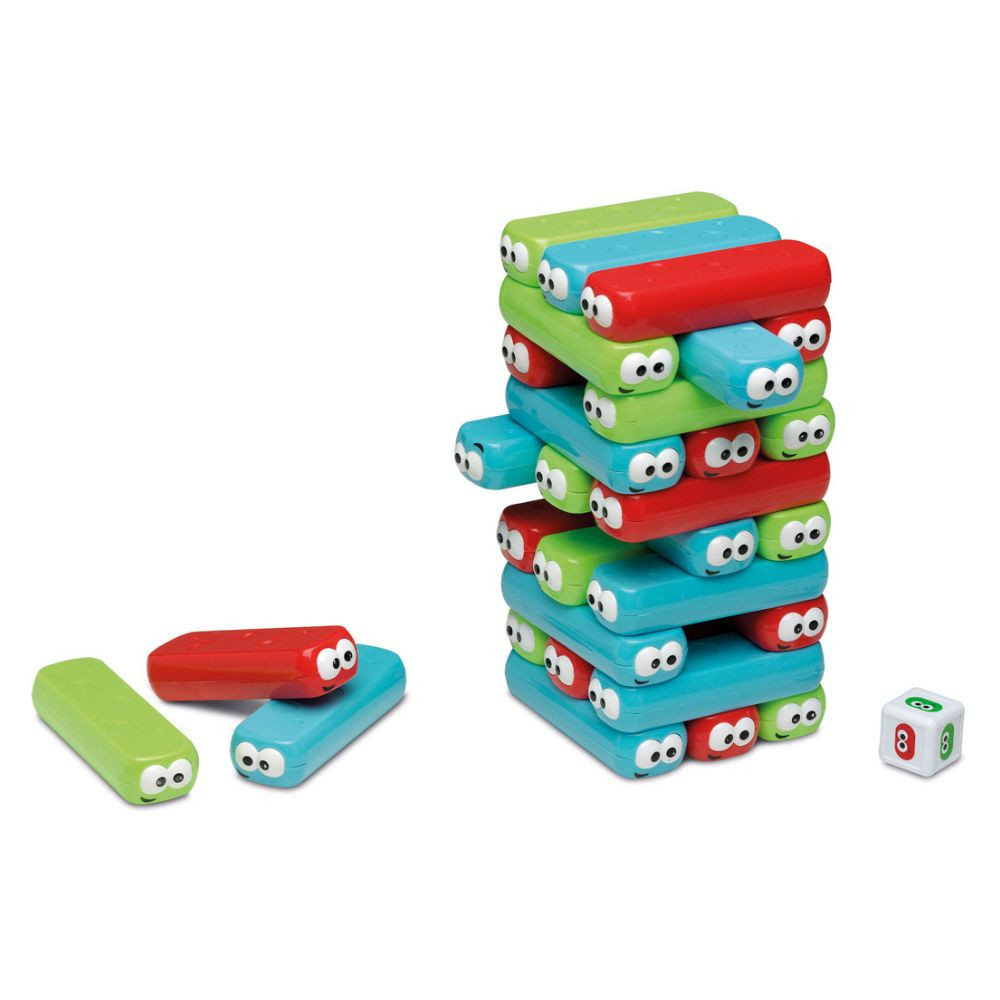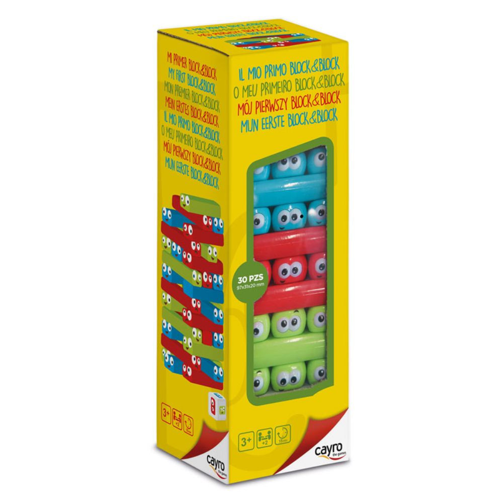 My First Block & Block egy látványos, ügyességre épülő játék, ahol a játékosok felváltva húznak ki színes blokkokat a toronyból, ügyelve arra, hogy az építmény ne dőljön össze. Az izgalmas kihívás: vajon mennyire tudod stabilan mozgatni a darabokat anélkül, hogy kibillentenél. A játékmenet egyszerű, de minden lépés számít: bizonyosodj meg róla, hogy a torony még áll, miután kihúztál egy blokkot. Ha rossz döntést hozol és a torony dőlni kezd, veszítettél. Ez a játék nagyszerűen fejleszti a kézügyességet, finommotorikát és a stratégiai gondolkodást. Doboz tartalma: