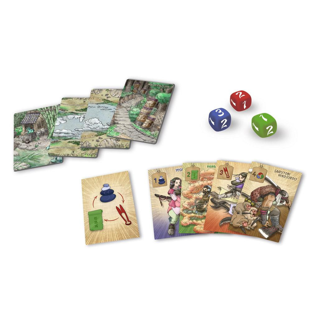 A Mashirazuka és Yonakizawa falu közötti békés együttélés sajnos a múlté, és a vezetők most a legjobb nindzsáik csatába küldésével próbálják leigázni a másik fél települését. Az izgalmas játékban a te döntéseden múlik, ki kerül ki győztesen ebből a küzdelemből! A különféle értékű és színű harcosokat elrendezve már kezdődhet is a harc. A játékosok felváltva dobnak a három kockával, majd a dobás alapján három lépést tehetnek harcosaikkal. Ha egy harcosod lapjára mozgatás közben egy másikat helyezel, attól kezdve együtt mozognak majd. Amikor két harcos (vagy harcosokból álló sor) szembekerül egymással, mérkőzniük kell. Az összetűzés kimenetele a kő-papír-olló mechanizmuson és a harcosok erősségén alapul. A játék tartalmazza: