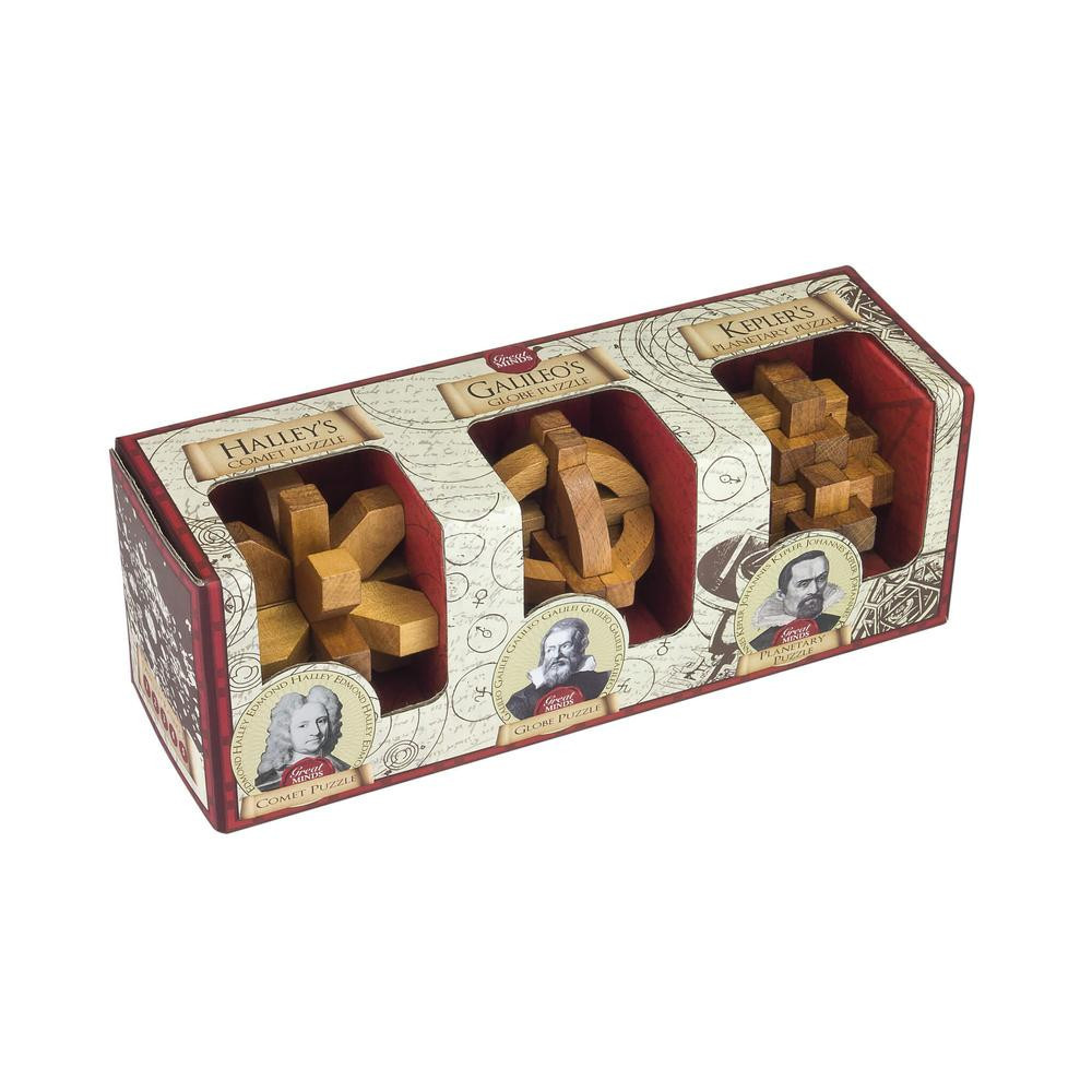 A fából készült fejtörők az alábbi híres tudósokhoz kapcsolódó formákat elevenítenek meg: Halley (üstökös), Galileo (gömb) és Kepler (csillagászati). Ezek a kézműves puzzle-k garantáltan rabul ejtenek. Tedd próbára az ügyességedet az ördögi ördöglakatokkal és töltsd kreatívan a szabadidőd!