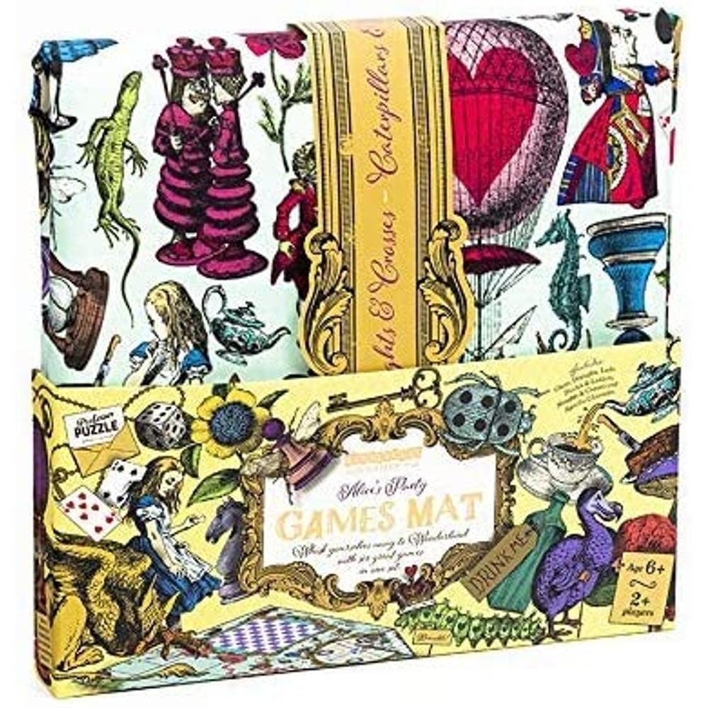 - Játékszőnyeg: az egyik oldalon egy Alíz csodaországban témájú montázzsal, a másik oldalon a "játéktáblák" képével