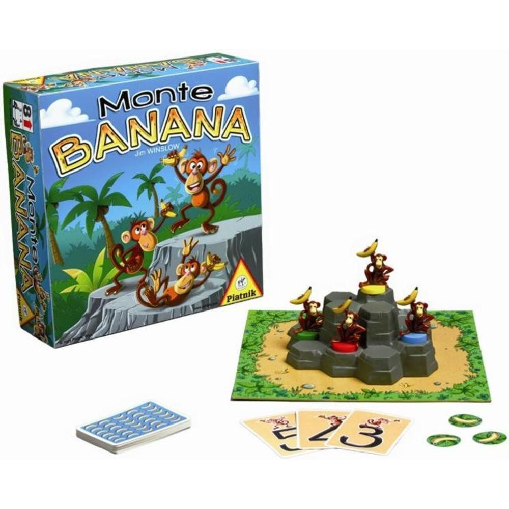 - A játék tartalma: egy játéktábla, egy Monte Banana, 4 majom, 20 játékkártya, 20 banánkorong, egy játékszabály