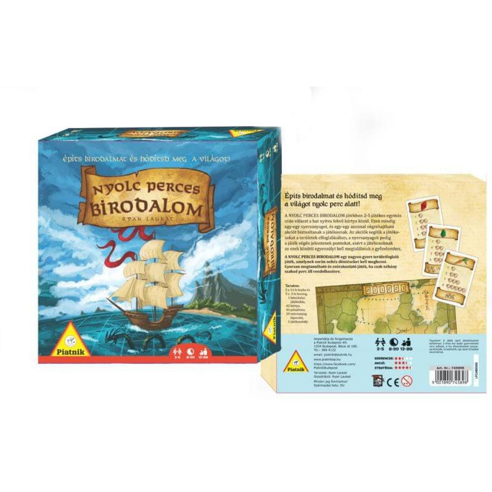 Nyolcperces Birodalom - egy gyors és izgalmas területfoglaló játék, amely új szintre emeli a gyors döntéshozatalt. A játék 2-5 játékos számára készült, akik a hat felfedett kártya közül választják ki a nekik legmegfelelőbb nyersanyag és akciókártyát. Miközben az akciókártyák segítenek birodalmakat gyarapítani, a megszerzett nyersanyagok a játék végi pontozásban játszanak kulcsszerepet. A sikerhez elengedhetetlen az egyensúly megtalálása ezek között! Hozd meg a stratégiái döntéseket, és vezesd győzelemre birodalmadat akár néhány szabad perc alatt!