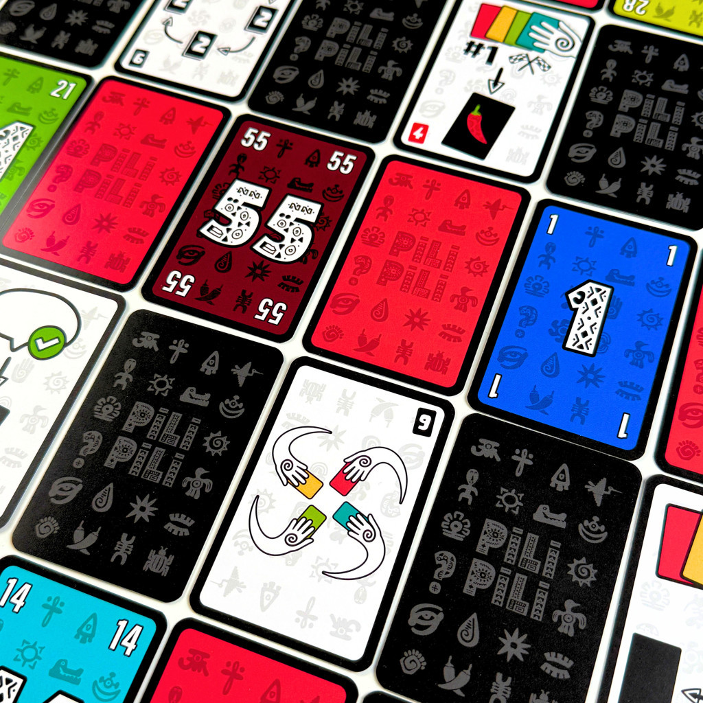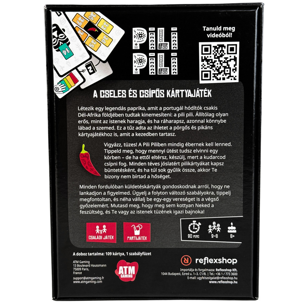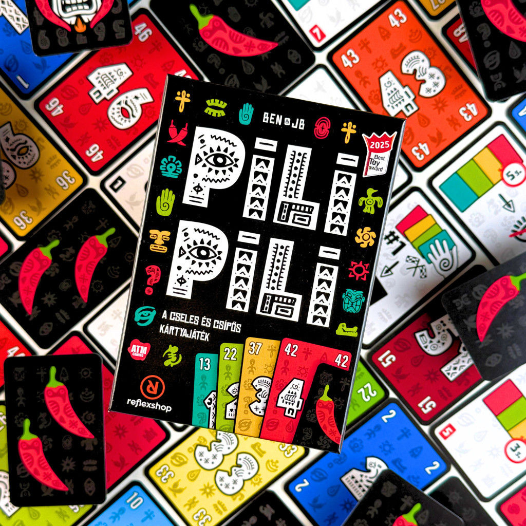 A cseles és csípős kártyajáték. Vigyázz, tüzes! A Pili Piliben mindig ébernek kell lenned. Tippeld meg, hogy mennyi ütést tudsz elvinni egy körben - de ha ettől eltérsz, készülj, mert a kudarcod csípni fog. Minden téves jóslatért pilikártyákat kapsz büntetésként, és ha túl sok gyűlik össze, akkor Te bizony nem bírtad a hőséget!