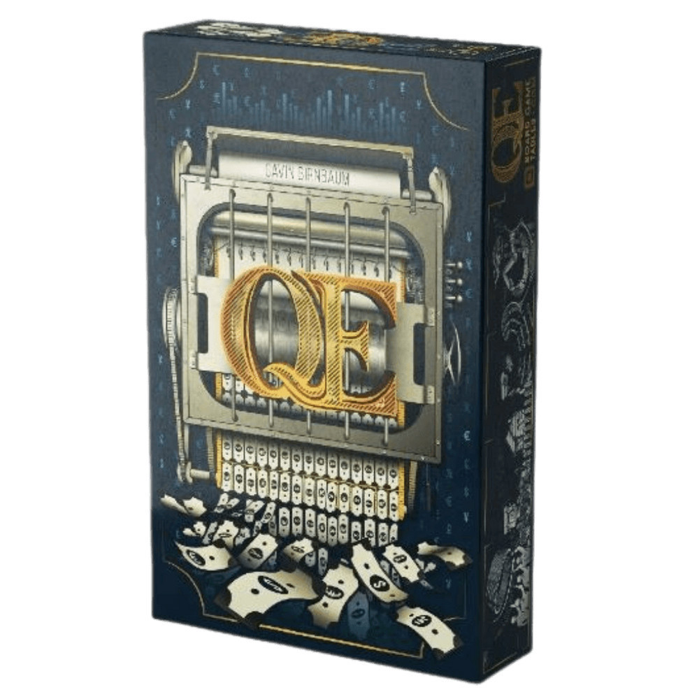 A világ pénzügyi válság közepén áll, és a túl nagy ahhoz, hogy elbukjon vállalatok megmentésre szorulnak. Ebben a stratégiai társasjátékban a játékosok egy központi bank szerepét vállalják, hogy a lehető legtöbb győzelmi pontot szerezzék meg. A QE-ben a liciteknek nincs felső határa, ugyanis a játékosok egyenesen a pénz nyomdából merítenek. Az első játékos nyílt ajánlatot tesz, melyet a többiek titkos licitekkel próbálnak túlszárnyalni. A sikeres stratégiák közé tartozik a vállalatok kombinálása a nemzeti egyesítés, monopolizáció vagy diverzifikáció érdekében. Vigyázat! Ha túl sok pénzt költesz, elveszítheted az összes győzelmi pontodat. A játék jellemzői: