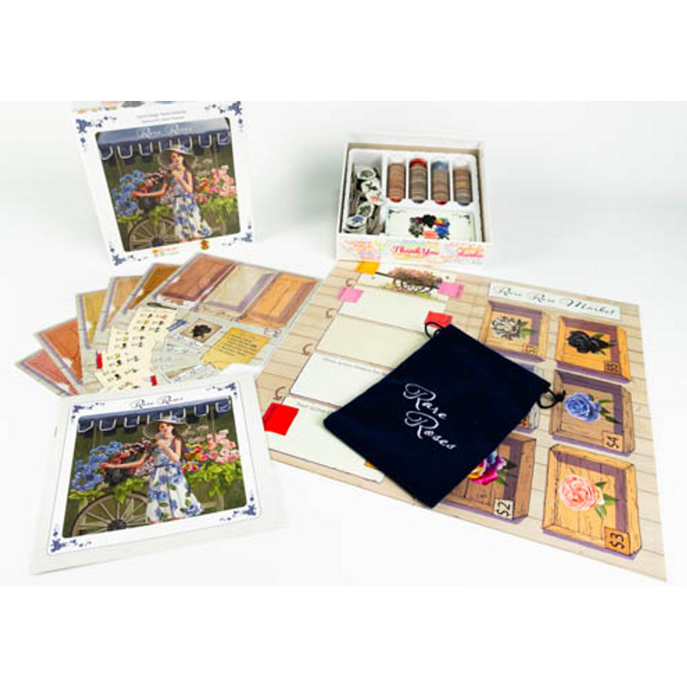 Bloomsville városában az emberek különösen rózsás életet élnek! A város híres a ritka és különleges rózsaboltokról és rózsás kertekről. De a verseny ádáz: a virágárusok bő választékkal, fantáziadús kreálmányaikkal árasztják el a vevőket. Készen állsz, hogy te is versenybe szállj a piacon az egzotikus fekete és kék rózsákkal? Gondolkodj előre: vajon nagy profittal járó, csúcskategóriás rendeléseket célzol meg, vagy kisebb, de jövedelmező megrendelésekből építkezel majd? A játékosok virágtervezők bőrébe bújnak Bloomsville-ben, hogy ők legyenek a legjobbak, és megnyerjék a rózsaőrületet. Vásárolj rózsatöveket, fejlessz gyönyörű virágokat, állíts össze kreatív csokrokat, és teljesíts rendeléseket, hogy te legyél a város legjobb virágtervezője. A játék akkor ér véget, ha az összes rendelés teljesítve lett, és az nyer, aki a legtöbb pontot gyűjtötte. Rendeld meg most!