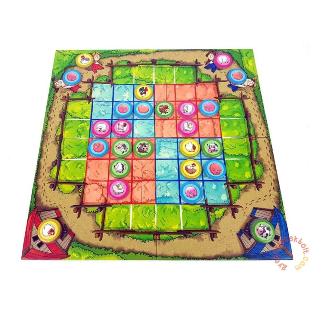 Kaotikus állapotok: Micsoda zűrzavar! Amint a gazda elhagyta a farmot, minden állat kiszabadult a legelőre. Habár a Te óvatlan mozdulatod volt az oka annak, hogy kinyitottad a pajta ajtaját, most rajtad a sor, hogy rendet tegyél. De figyelj, az állatoknak különleges igényeik vannak, hogy ki mellett szeretnek eszegetni. Gondolod, hogy meg tudsz felelni ennek a kihívásnak? Stratégák küzdelme – a farmon: A tanyavilág állatai szétszéledtek, és neked és a riválisodnak az a feladata, hogy összetereljétek őket. Az állatok válogatósak, és nem mindegy nekik, hogy ki mellett legelnek, de figyelned kell a riválisod stratégiájára is. A célod az, hogy két legelőd egyikére minden állatfajból legalább két példányt elhelyezz. Az nyer, aki először gyűjt össze pár tehenet, malacot, bárányt, csirkét, plusz egy tetszőleges állatot egy legelőn, vagy 12 állatot terel be a rétről. Ha 3 azonos állatot sorba raksz, leveheted őket a tábláról, ezzel bonyolítva a játékot ellenfeled számára. Amőba és malom egyszerre? A Tic Tac Moo egyedi egyvelegét képezi e két klasszikusnak, ami nagyszerű kihívást jelent a taktikai játékok kedvelőinek. Fókuszban a stratégia és a gyors gondolkodás!