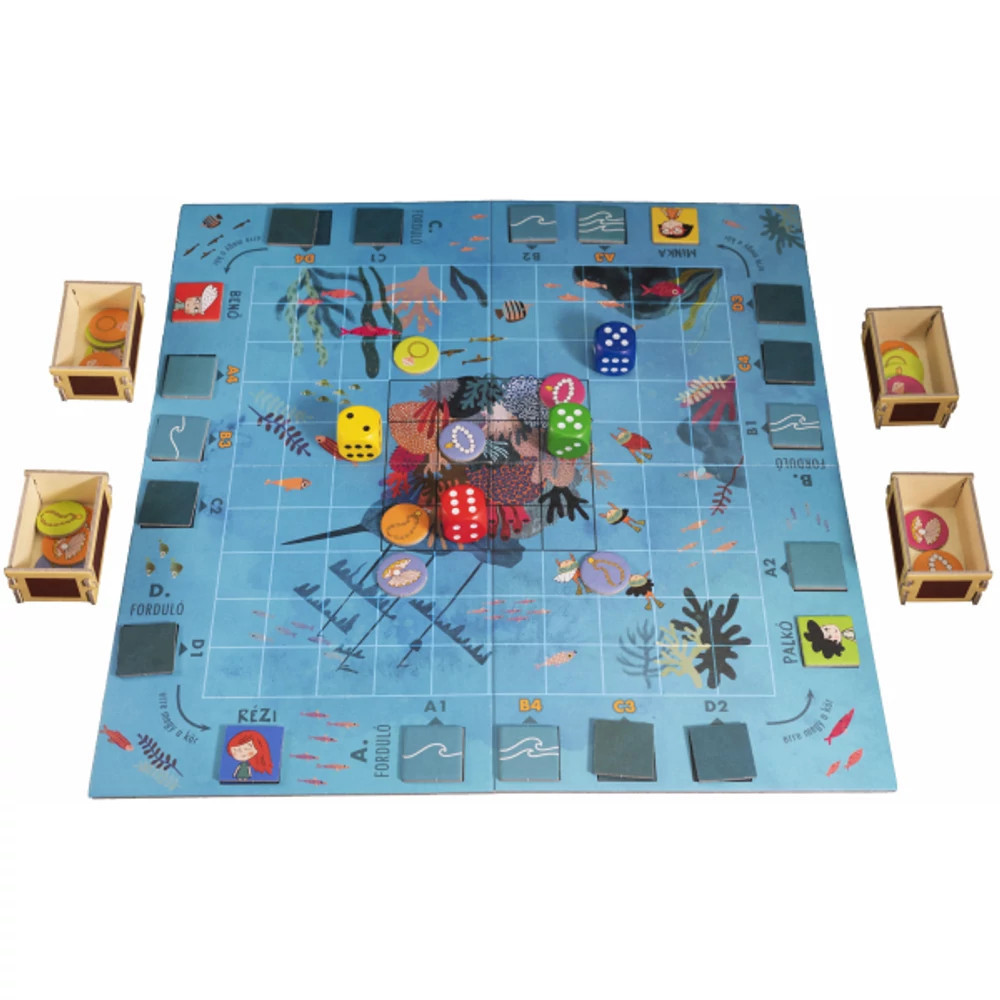 Kincsvadászatra fel! Ismerkedj meg Rézivel, Palkóval, Minkával és Benővel, a négy kalandorral, akik éppen a korallzátonynál merülnek, amikor észreveszik, hogy a kalózok kincsesládája a vízbe esett. A láda kinyílik, és a kincsek minden irányban szétszóródnak az áramlatokban. Segíts nekik összegyűjteni a kincseket, és fedezd fel, merre sodorja a víz a drágaságokat! Készen állsz a kincsvadászatra? Ez a játék nemcsak szórakoztató, hanem fejleszti a térbeli tájékozódást és a logikai képességeket is.