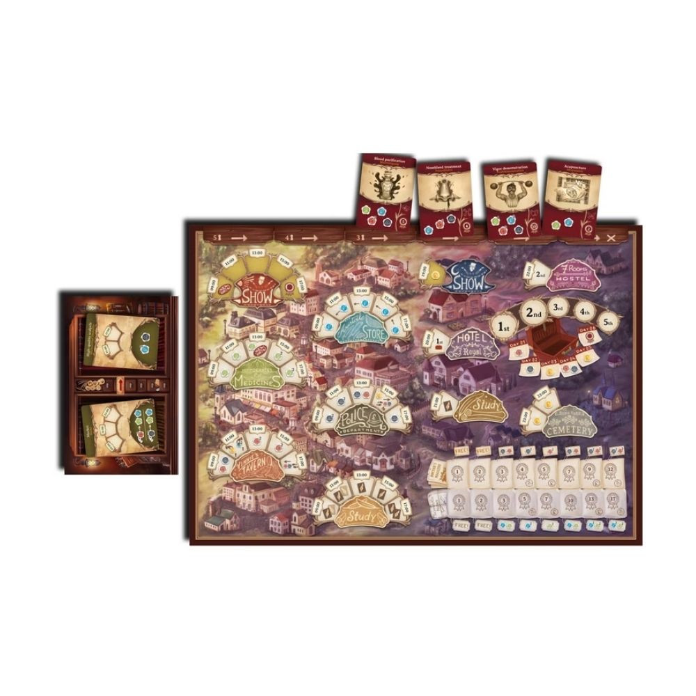 Üdvözlünk a Trepanation világában, egy izgalmas társasjátékban, ahol a 19. századi "orvosi" szélhámosságok részese lehetsz! A történetek, mint Mary Shelley Frankenstein-je, inspirálták ezt a játékot, amelyben a célod, hogy elnyerd a legnagyobb hírnevet és vagyont. A játék során időpontokat foglalsz, cinkosokat toborzol, ütemterveket készítesz, és még a rendőrséget is megvesztegetheted! Vigyázz, mert a váratlan események mindig változást hozhatnak!