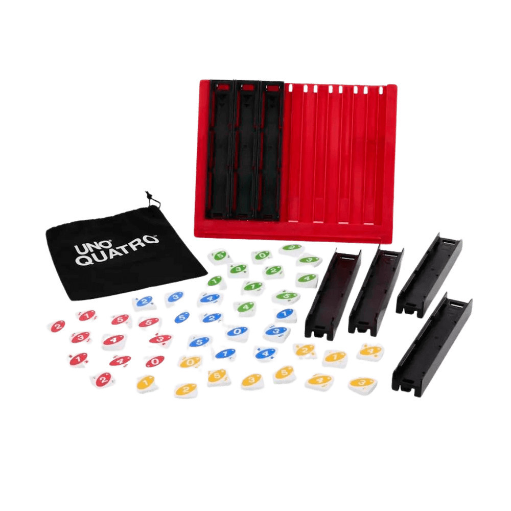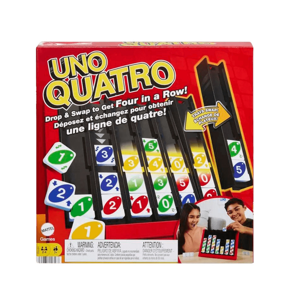 Az UNO játék legújabb változata, az UNO QUATRO, garantáltan felfrissíti a játékélményt, miközben még több szórakozást nyújt számodra! Ez a játék két nagyszerű játékmenetet ötvöz: a klasszikus UNO elemeit és a "4 a nyerő" hagyományos szabályait. Az UNO QUATRO során a cél ugyanaz, mint a hagyományos UNO-ban: minél gyorsabban megszabadulni az összes kártyádtól, de most egy izgalmas csavarral!
