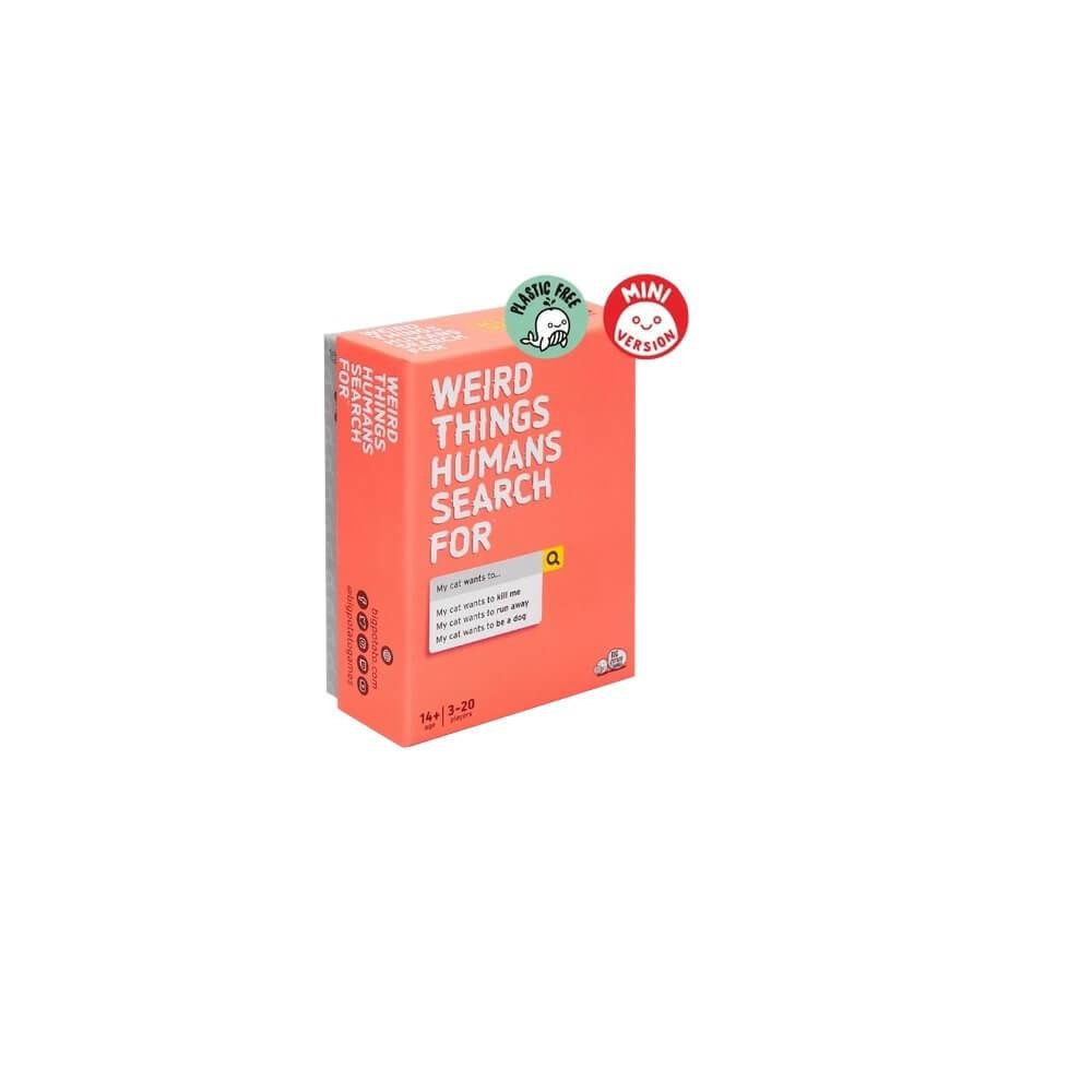 A Weird Things Mini társasjáték igazi kihívás az internet furcsa világában. Próbáljátok kitalálni, hogy egy adott mondatkezdésre mire kereshettek rá a legtöbben - el fogtok csodálkozni, mennyire váratlan válaszok születhetnek! Kiváló választás minden alkalomra, akár egy unalmas buszúton, akár egy lassan induló bulin. Tartalmaz 70 kártyát, és angol nyelvű kihívásokat kínál játékosainak. 14 éves kortól ajánlott. Tedd próbára a kreativitásodat és a humorodat ezzel a mini kiszerelésű játékkal, amely bárhová elkísérhet!