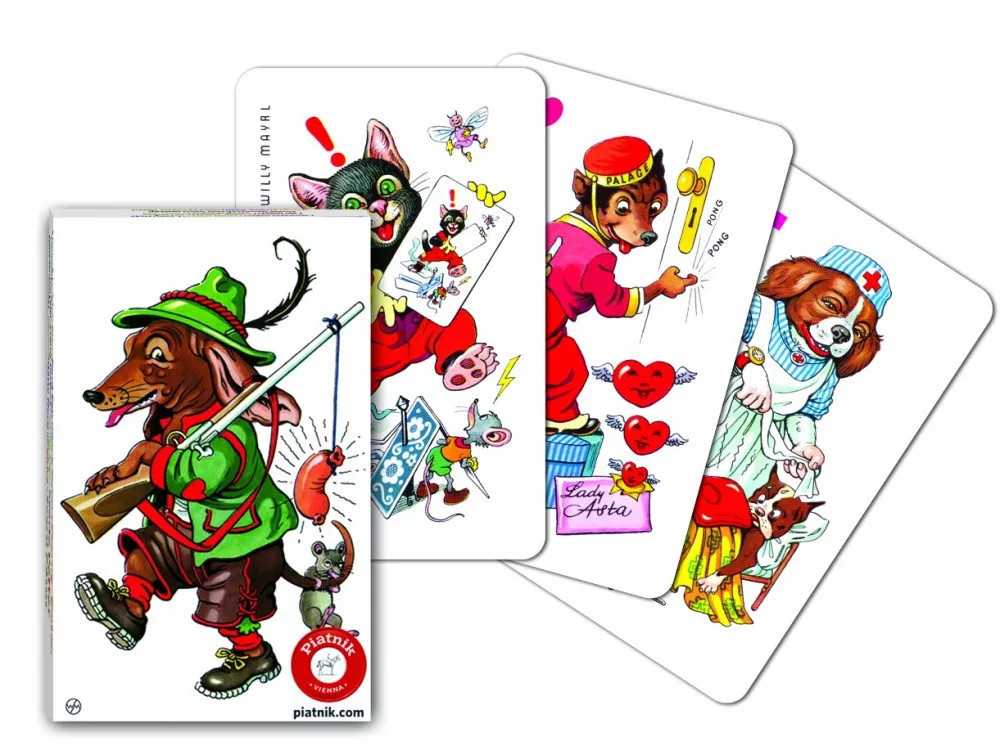 Fedezd fel a Fekete Péter gyerekkártya izgalmas világát, amely most a legaranyosabb kutyusokkal érkezik hozzád! A klasszikus Fekete Péter játék szabályai alapján játszható, ahol a cél, hogy elkerüld a Fekete Péter kártyát, és gyűjts össze minél több páros kártyát.