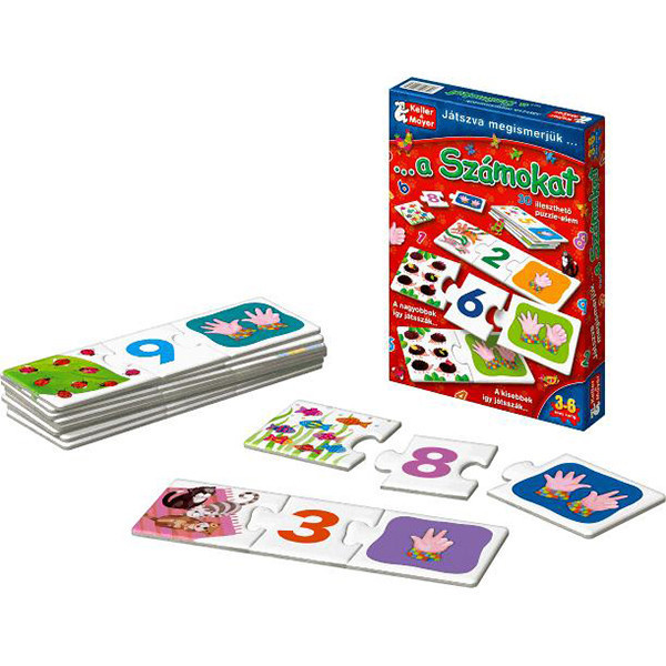 Játékos bevezetés a számok világába. Számoljuk meg a kártyákon lévő állatfigurákat és keressük meg a hozzá illő számot mutató kis kezet. Ha ezt begyakoroltuk, akkor az általunk ismert kártyák közé beilleszthetjük a szám írott képét is. Gyakorolhatjuk a több-kevesebb fogalmát a számok növekvő-csökkenő sorrendjét és a páros- páratlan számokat.
