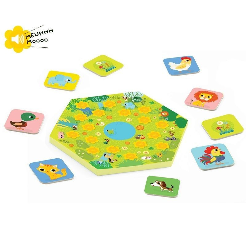 Ezek a játékok Djeco márkájúak. A termék cikkszáma: DJ08482 - Állatok hangokkal memória játék - Memo Meuh - Djeco. Ez egy nagyon szórakoztató memória játék óvodásoknak, amihez a Djeco állította elő. Nyomd meg a sárga gombot, és figyeld, hogy milyen hangot ad ki az állat. Miután felismerted az állatot, csak meg kell találnod a megfelelő lapot a kártyák között! Ez a játék segít a memóriád és a hallásod fejlesztésében. Ajánlott 3-6 éves gyerekeknek, és 2-4 játékos játszhat vele. Az átlagos játékidő 10 perc.