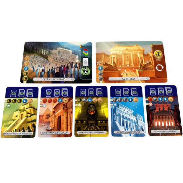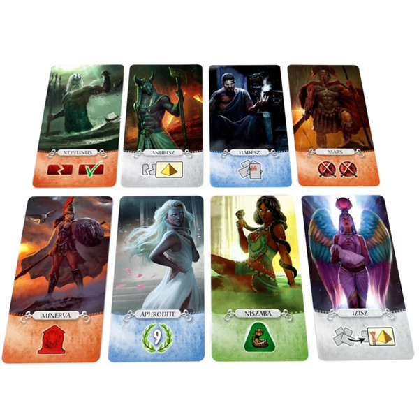 Hódolj az isteneknek! a 7 Csoda: Párbaj Panteon kiegészítője, a már jól ismert 7 Wonders Duel Pantheon magyar nyelvű kiadása. Változtasd meg a játék ritmusát, és állítsd magad mellé az ókori világ hatalmas istenségeit! Férkőzz az istenek kegyeibe, majd a bizalmukat elnyerve felülkerekedhetünk ellenfelünkön. A játékhoz szükség van a 7 Csoda: Párbaj társasjátékra!