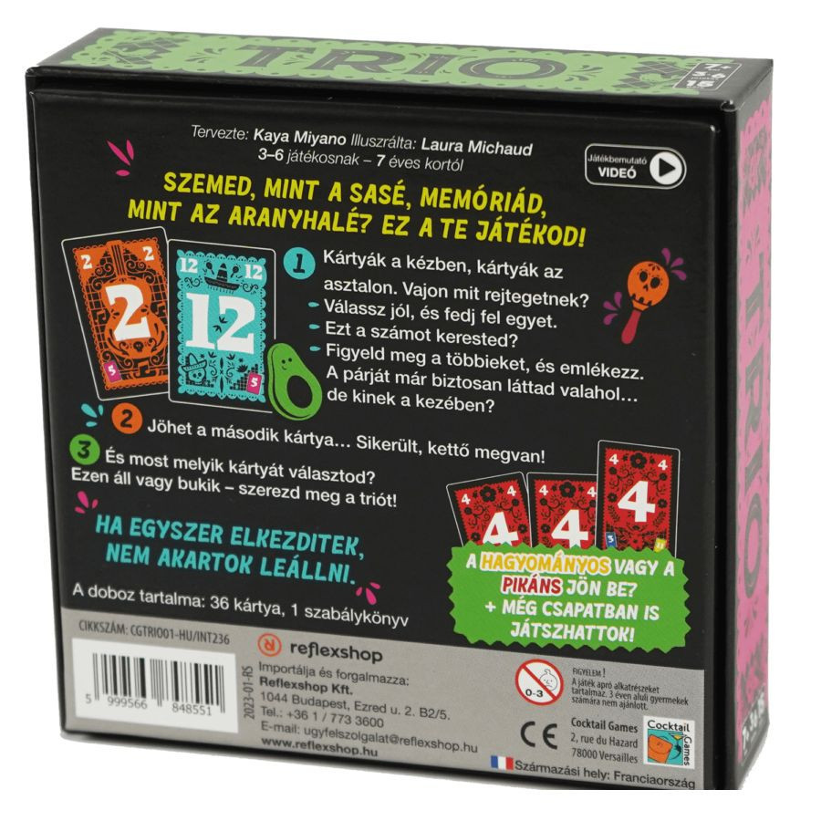Biztosan élvezni fogod ezt a remek társasjátékot, amelyben készségeidet a memóriában és a megfigyelésben fejlesztheted! Gyorsaságra és ügyességre van szükség, hogy legyőzd az ellenfeleidet és elsőként gyűjtsd össze a triókat. Ez a játék garantáltan fergeteges szórakozást nyújt a családdal és barátokkal egyaránt. Vásárold meg most és kezdjétek a Trio kártyák felfedésének izgalmas versenyét!