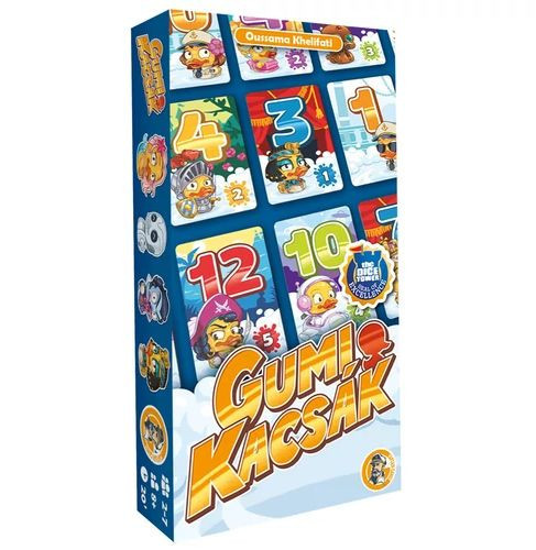 A Gumikacsák egy könnyed kártyajáték, amelyben a játékosok igyekeznek saját, oszlopokba és sorokba rendezett kártyáikat minél kisebb területre összehúzni. A 12 különböző értékű kártya közül mindig azt mozgathatod, amit a „kapitány” kijelöl. Áthelyezheted bármelyik üres helyre vagy letakarhatod vele az egyik szomszédos lapot. Jó ötlet lapot letakarni, mert ebben a játékban akkor nyerhetsz, ha neked van a legkevesebb pontod, és minél több kártyát tudsz letakarni, annál kevesebb pontot fogsz összegyűjteni a fordulók végén.