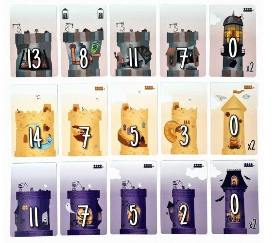 Ebben a könnyed, pörgős, szettgyűjtős játékban a játékosok versenyeznek, mint mesterépítészek, hogy megszerezzék a lapokat, és felhasználják őket a legmagasabb tornyok építéséhez. De ne felejtsd el: a lapokat csak akkor birtokolhatod, ha hajlandó vagy többet kockáztatni, mint a többi játékos.