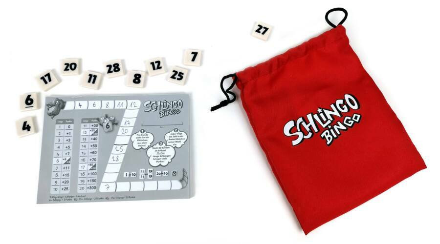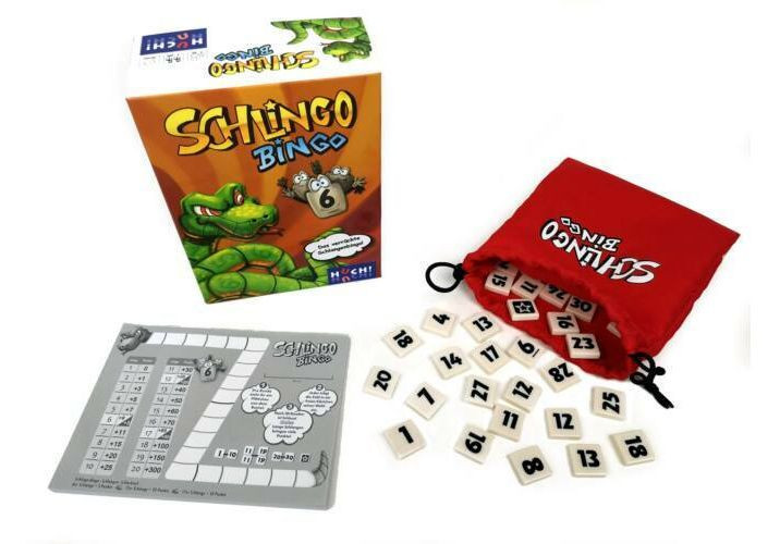 A "Schlingo Bingo" egy tökéletes gyors játék szórakozás, amelyet a praktikus táskának köszönhetően útközben is lehet játszani. A Schlingo Bingo játékban a játékosok összesen 20 bingó lapkát húznak ki a zsákból. Minden egyes lapka egy számot mutat 1 és 30 között. A játékosok a számot a Schlingo Bingo lapjuk egyik szabadon választott mezőjébe írják.