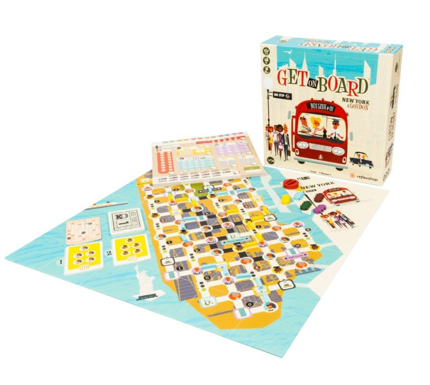 A Get on Board New York & London társasjátékban 2-5 játékos építi ki a városok buszútvonalait. A körülbelül 30 percig tartó játékban a játékosok különböző utasokat vesznek fel, néhányat útközben kiraknak, és megpróbálják elkerülni a bosszantó forgalmi dugókat, ezzel minél több győzelmi pontot szerezve!