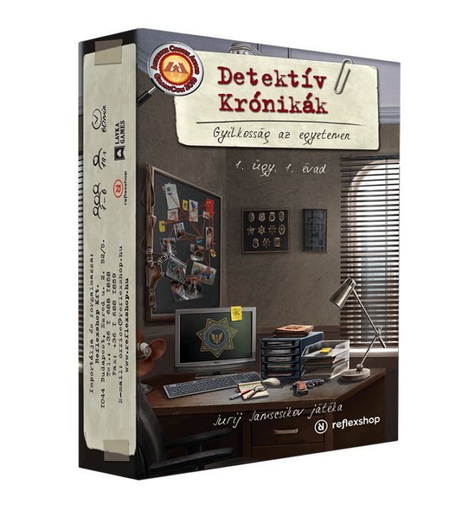 A Detektív krónikák - Gyilkosság az egyetemen társasjáték a sorozat első nyomozása, melyben az egyik egyetemi kutató meggyilkolását kell megoldanod! A nyomok összegyűjtésével, a helyszín vizsgálatával, de a szemtanúk és a gyanúsítottak kihallgatásával is rajtad múlik, hogy a megfelelő döntéseket hozd meg a tettes letartóztatásához és a nyomozás megoldásához!