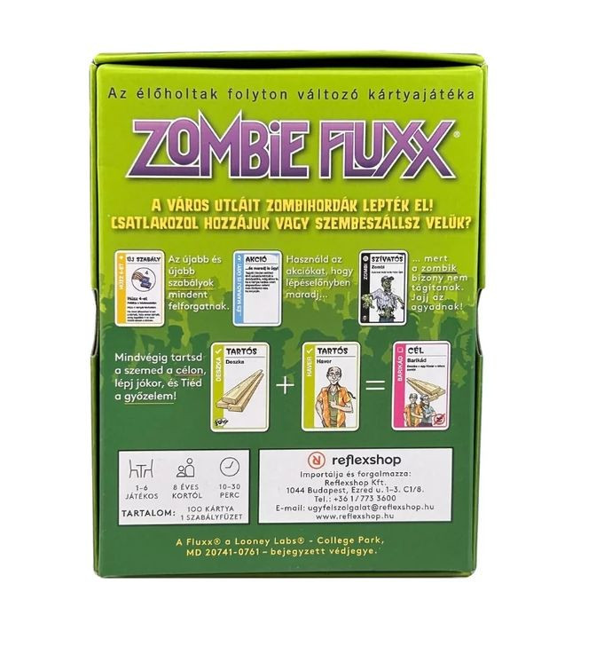 Vár rád a kihívás a Zombie Fluxx játékkal! Tapasztald meg a soha nem látott izgalmakat, és próbáld ki a szerencsédet ebben a változatos, fordulatos és szórakoztató kártyajátékban. Ne maradj ki a mókából, rendeld meg most, és éld át a zombi apokalipszis kalandját barátaiddal!