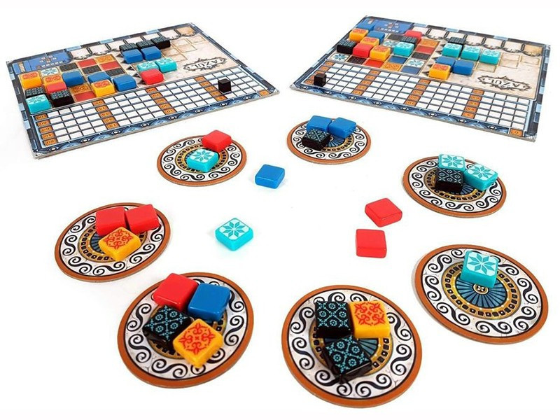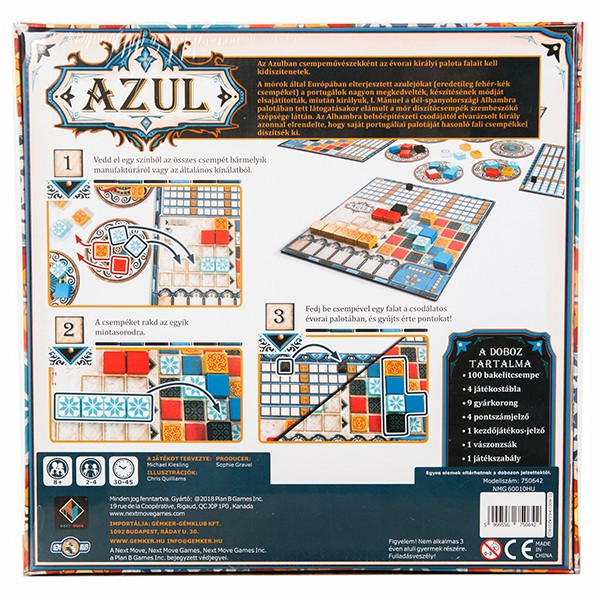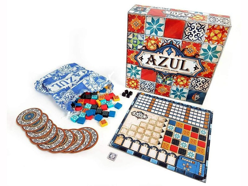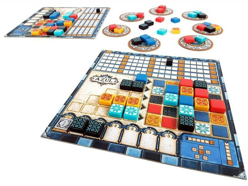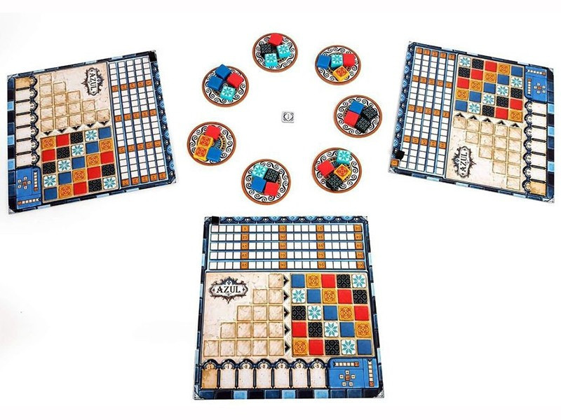 Az Azul társasjátékban annyi a teendőtök, hogy ügyesen és jó időpontban szerzitek be azokat a csempéket a gyártók választékából, amelyekből a legértékesebb oszlopokra és sorokra tudtok készletet tartalékolni, majd azokból feltölteni a készülő díszes csempefalat!