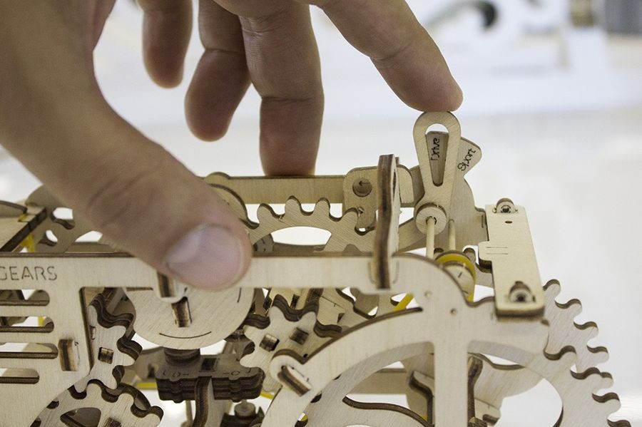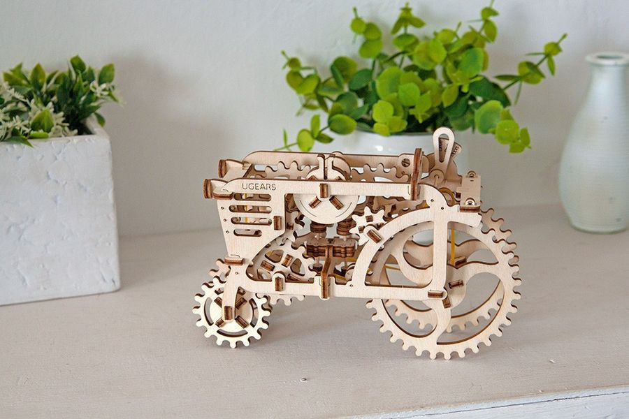 A Ugears termékek megtestesítik a természet egy darabkáját a szobában. A különleges, fa lemezekből álló játék önmagába véve kettős szerepet tölt be: először is izgalmas a megépítése, más részről kifinomult és letisztult, természetes dekorációs eleme a szobának, irodának vagy munkaállomásnak. A modellekben az elemek ragasztás nélkül összeilleszthetők, tervezésüknek köszönhetően tartós és időtálló darabok. Az összes modell mozgatható, vagyis valamilyen funkció végezhető vele (pl. a járművek fakerekeiken guríthatók, a dobozok nyithatók-zárhatók, más modellek tekerhetők, és a lendülettől mozognak). A Ugears famodellek természetes fából készülnek, natúr színük minden típusú polcok vagy asztalon jól mutat. A modellek fejlesztik a logikus gondolkodás, a finommotorikát és a kézügyességet, a szem-kéz koordinációt, és a térlátást. A különleges fa anyagnak köszönhetően az érzékelés-tapintás is fejlődik a játékkal, valamint segít a szabálykövetés elsajátításában (a megépítéshez útmutatót kell használni) és a mechanika alapjainak megértésében. Bártan ajánljuk Mindenkinek, aki szereti a modellezést, a kreatív és igényes játékokat, a kihívásokat, és a bütykölést, kézügyességet igénylő elfoglaltságokat. Mérete: 201*87*137mm. A játék 97 darabos. Az összeszerelés becsült ideje: 2-3 óra.